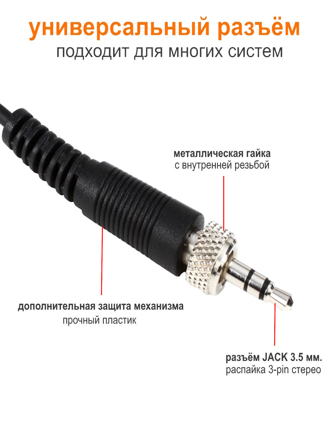 Внимание! Головную гарнитуру-микрофон можно подсоединить только в поясной передатчик от беспроводной микрофонной системы. С компьютером, смартфоном, колонкой она без приёмника и передатчика работать не будет.