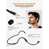 Вокально-речевой головной гарнитурный микрофон для поясных передатчиков от микрофонных радио систем с разъемом мини джек 3,5 мм. стерео с гайкой. Предназначен для многих радиосистем. Высокое качество звука, удобное расположение на голове.