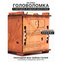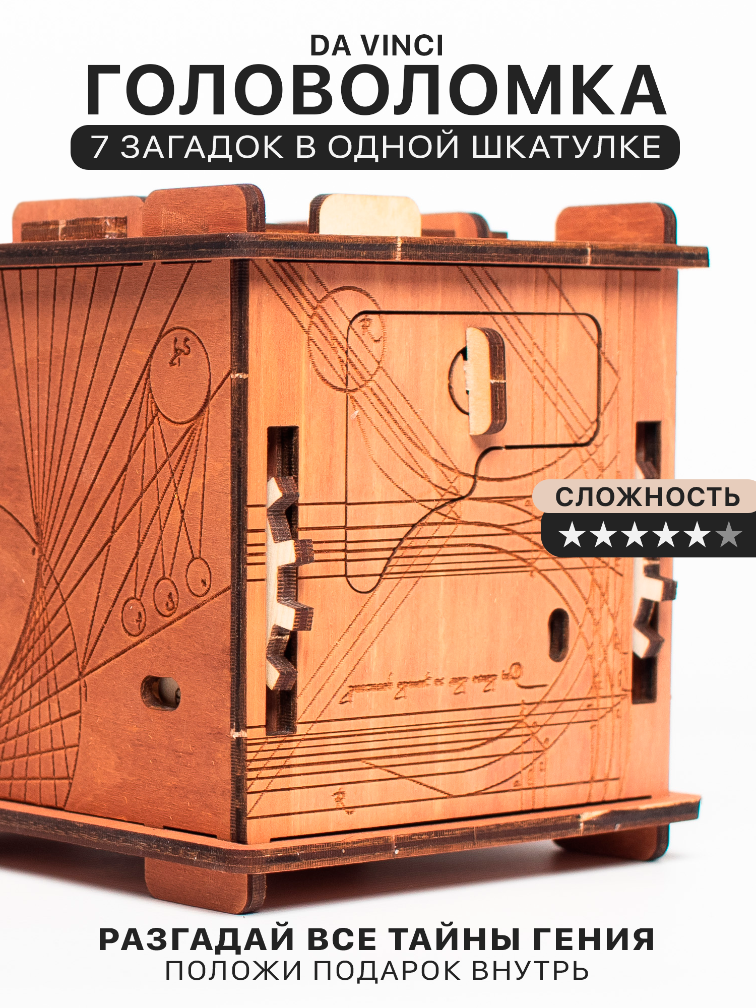 Деревянная головоломка квест-куб Da Vinci представляет собой тайную комнату гениального изобретателя. Как известно, Леонардо да Винчи умело прятал свои труды от глаз неприятелей с помощью шифров и головоломок. Сможете ли вы отгадать все загадки и открыть квест-бокс? Проверить свою сообразительность поможет квест-бокс Da Vinci.