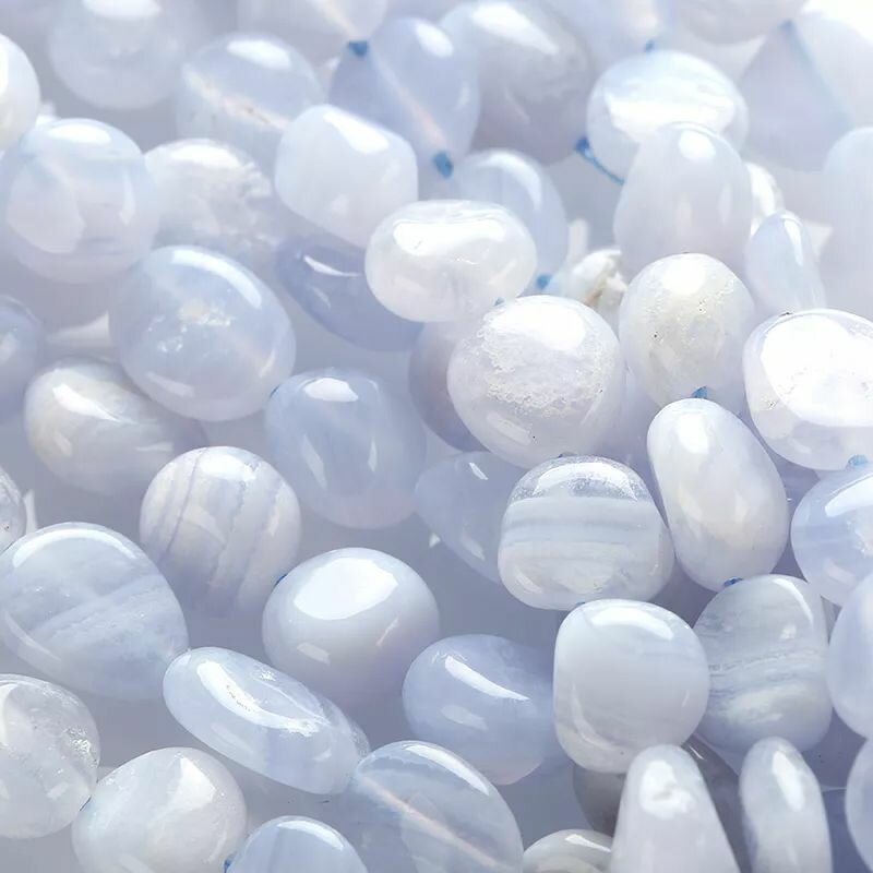 Купить Голубой Агат (Сапфирин), бусины галтовка 8-10 мм, на нитке 38 см, для рукоделия с доставкой по всей России.