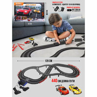 Гоночный детский автотрек на пульте с 2 машинками работает от сети и батареек, длина трассы 440 см, свет фар, эстакада, сужение трассы: сравнение цен, характеристики, фото, актуальное наличие и цены.