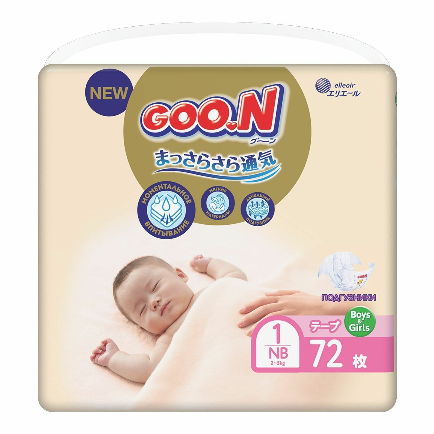 Подгузники GOO.N Premium, для новорожденных, 1 размер NB, 2-5 кг, 72 шт.: сравнение цен, характеристики, фото, актуальное наличие и цены.
