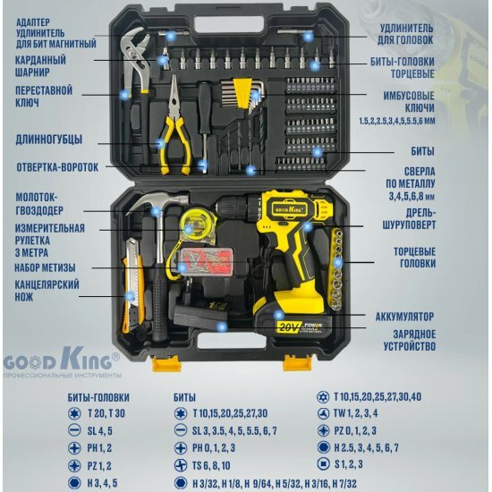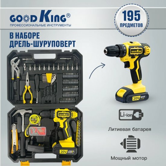 Купить Набор инструментов GOODKING, 20V, 195 предметов с доставкой по всей России. Набор инструментов GOODKING, 20V, 195 предметов: сравнение цен, характеристики, фото, актуальное наличие и цены.