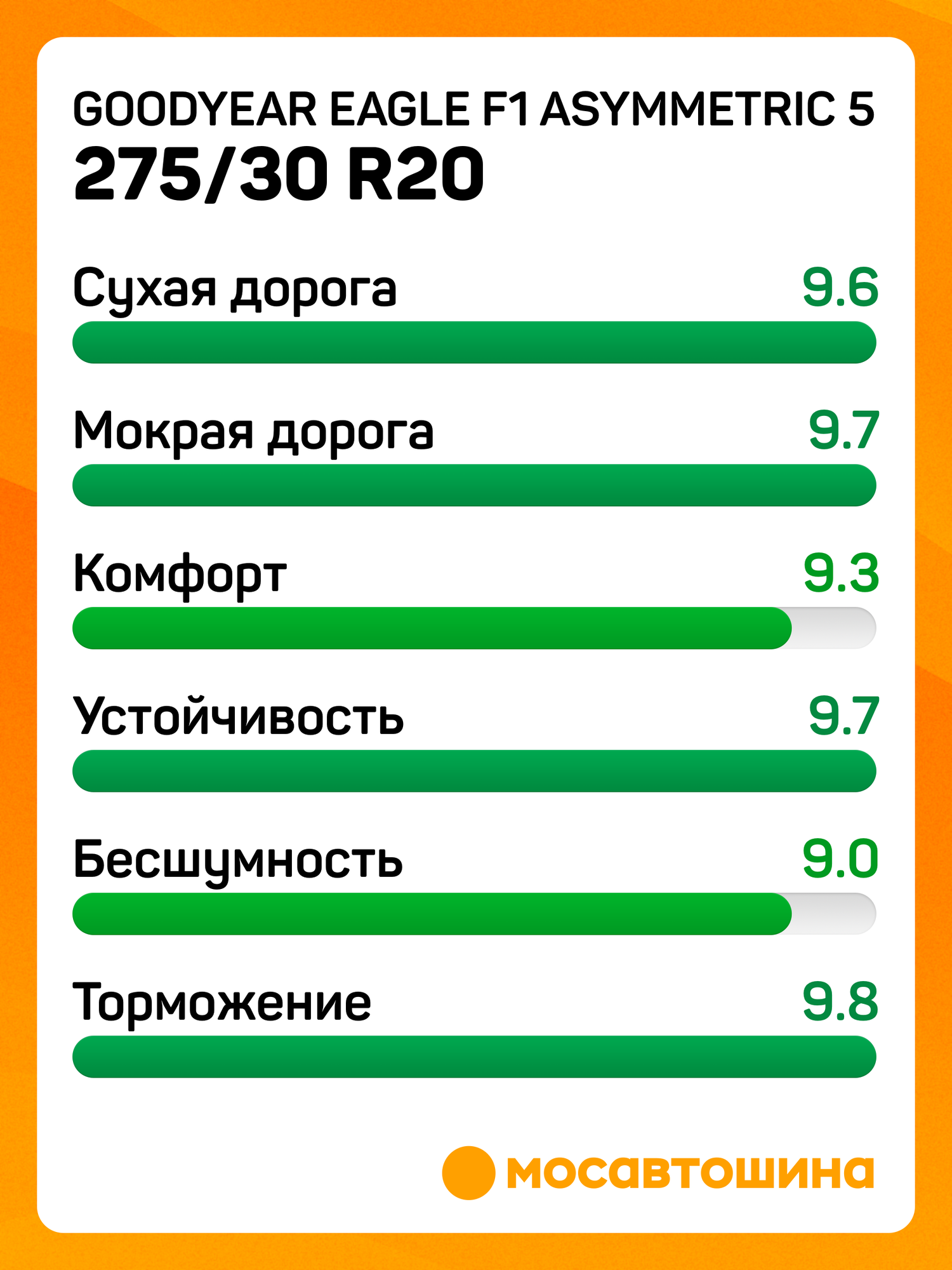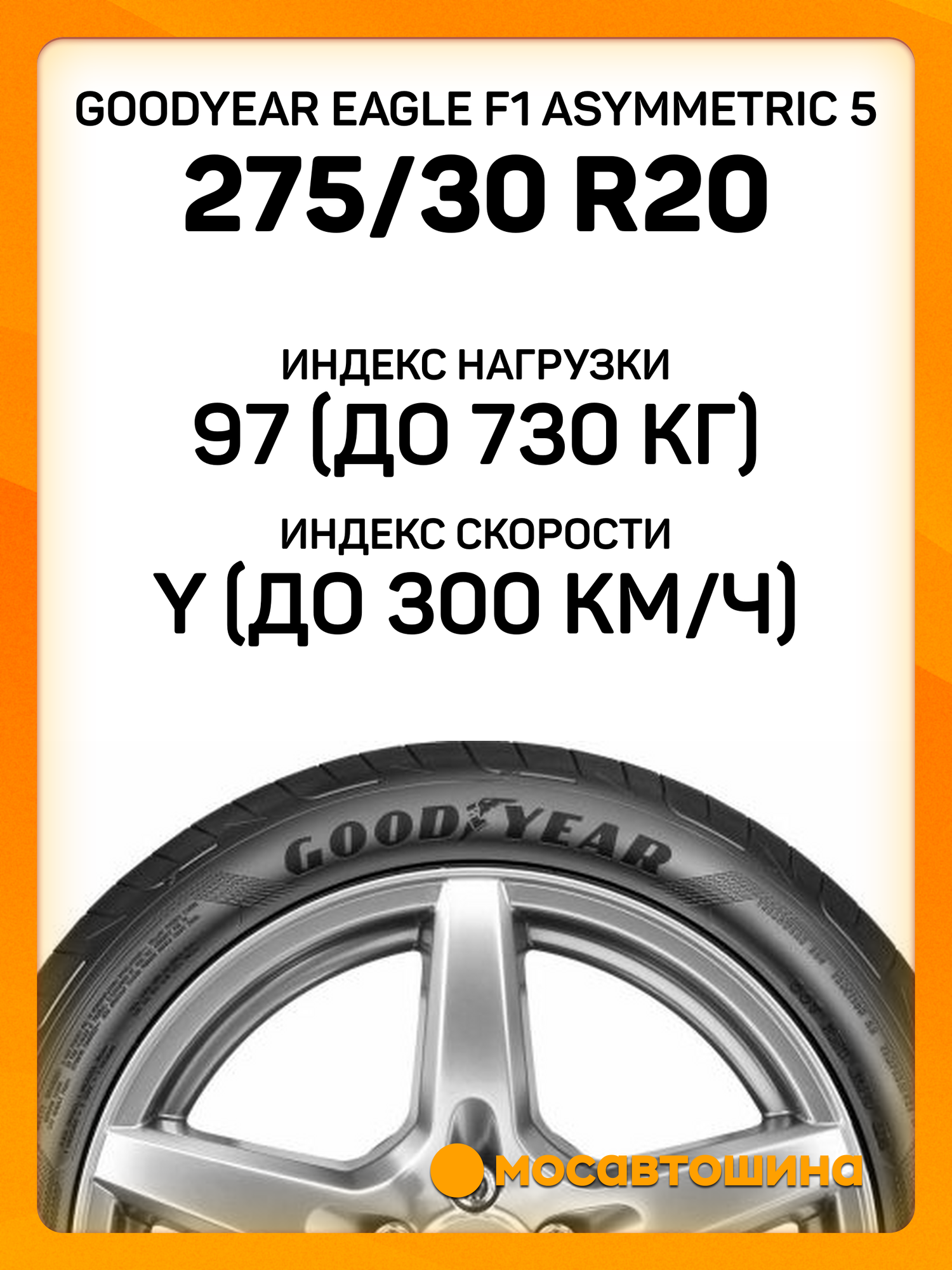 Летние шины 20/275/30 Goodyear Eagle F1 Asymmetric 5 97Y: сравнение цен, характеристики, фото, актуальное наличие и цены.