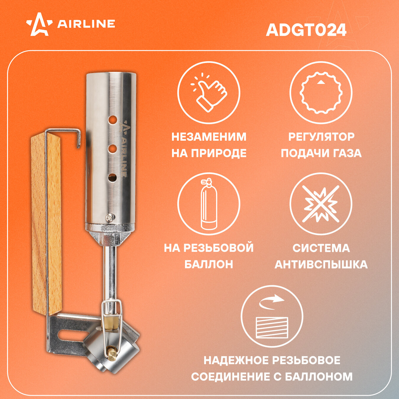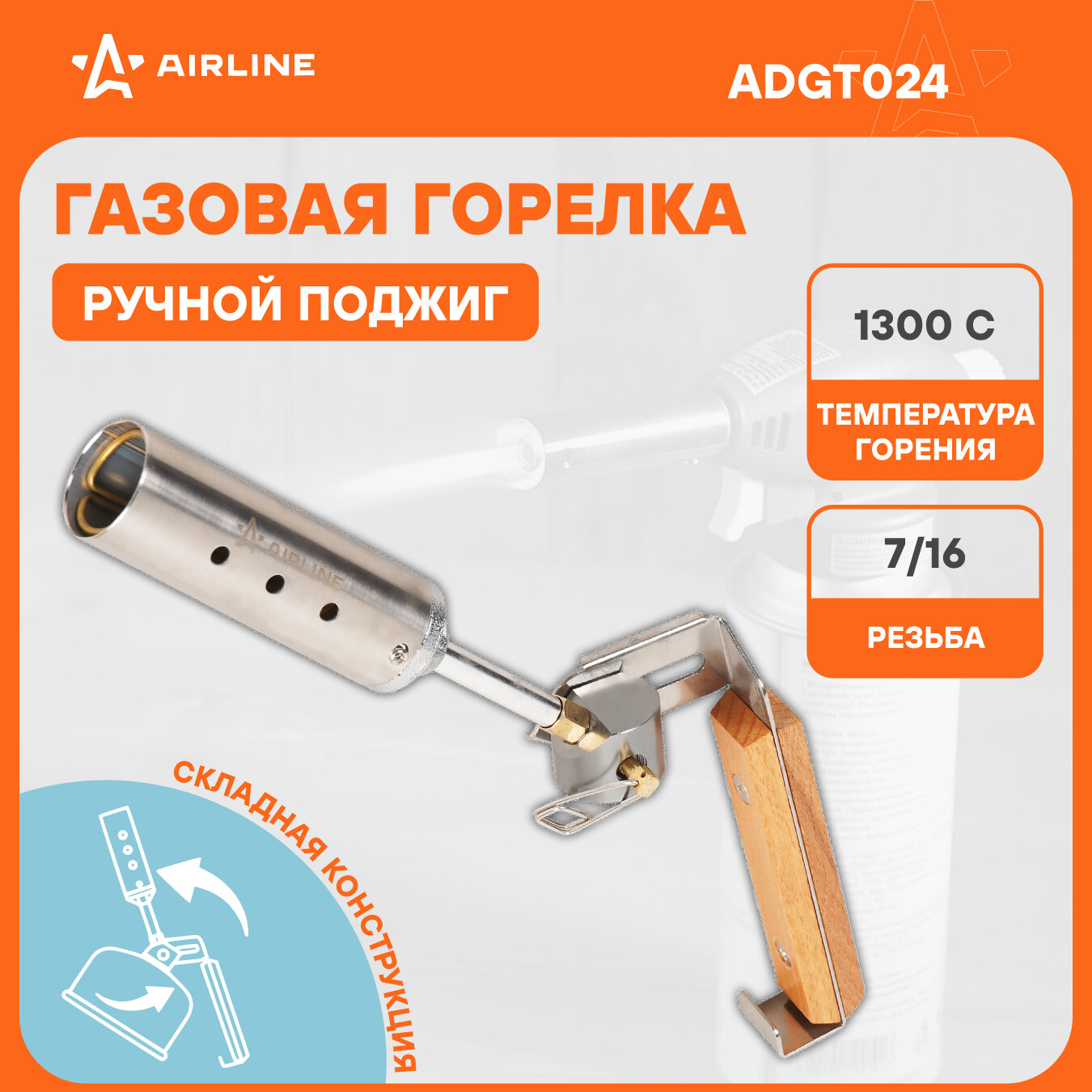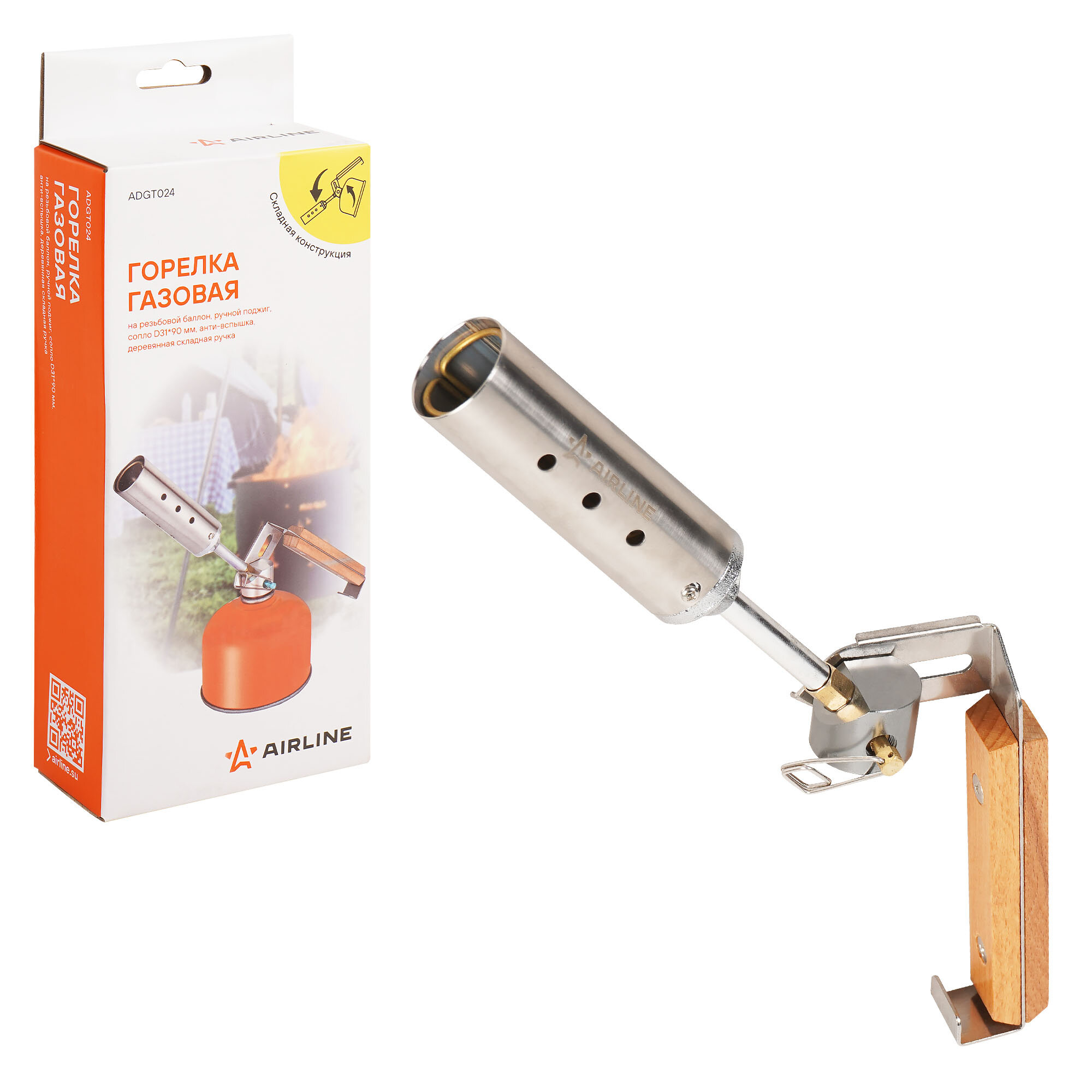 Горелка газовая на резьбовой баллон, ручн. поджиг, сопло D31*90 мм, анти-вспышка, дерев. склад. ручка ADGT024 AIRLINE: сравнение цен, характеристики, фото, актуальное наличие и цены.