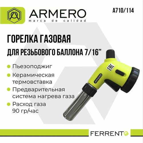 Горелка газовая с пьезоподжигом, для резьбового газового баллона 7/16, ARMERO А710/114: сравнение цен, характеристики, фото, актуальное наличие и цены.