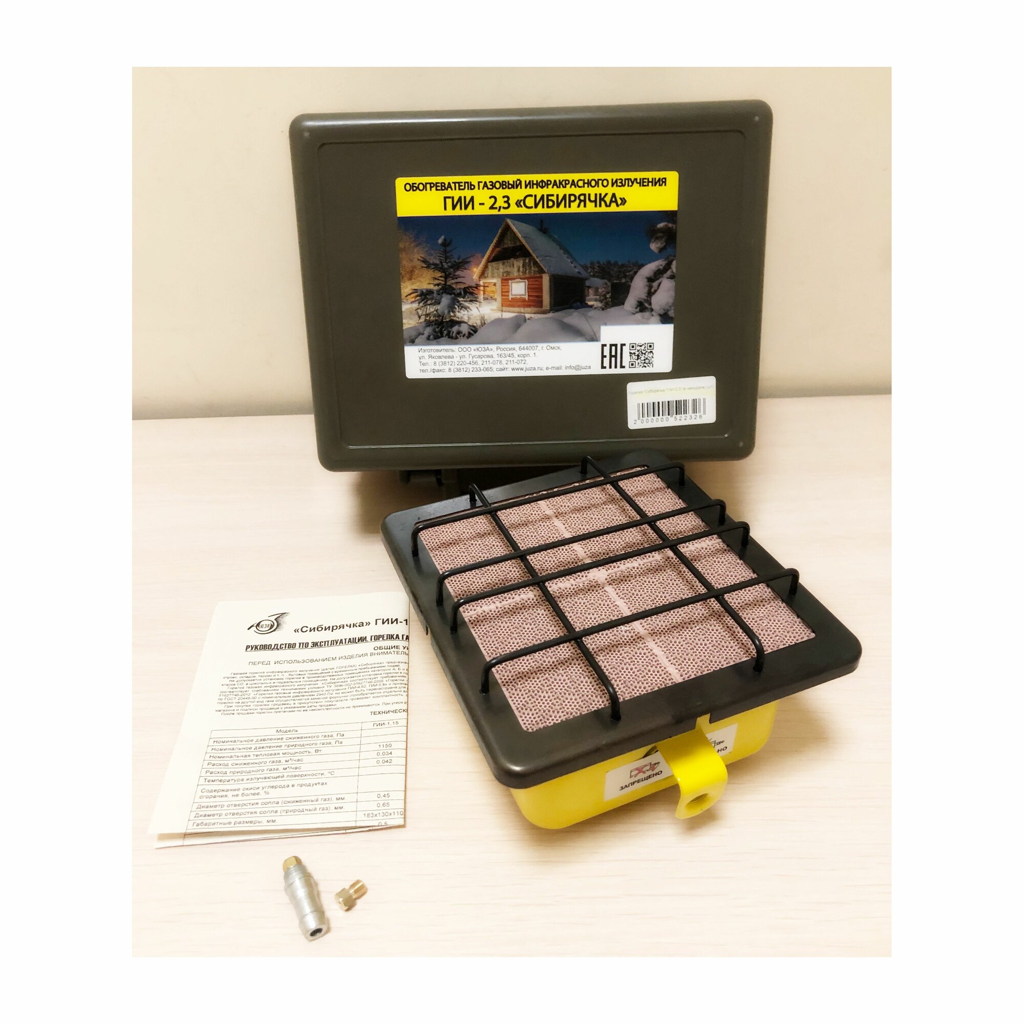 | Подробная комплектация | Горелка газовая,штуцер с форсункой для сжиженного газа в сборе,форсунка под природный газ, кейс |