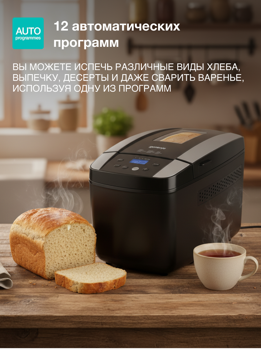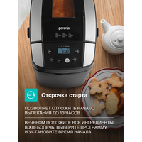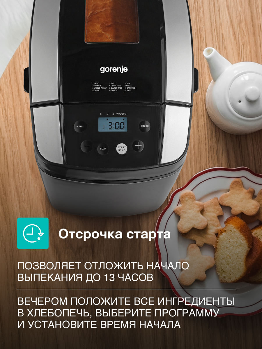 Купить Хлебопечь Gorenje BM1210BK черный/серебристый, мощность 800Вт, вес выпечки до 1200г, программ приготовления: 12 с доставкой по всей России. Хлебопечь Gorenje BM1210BK черный/серебристый, мощность 800Вт, вес выпечки до 1200г, программ приготовления: 12: сравнение цен, характеристики, фото, актуальное наличие и цены.