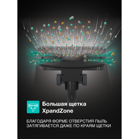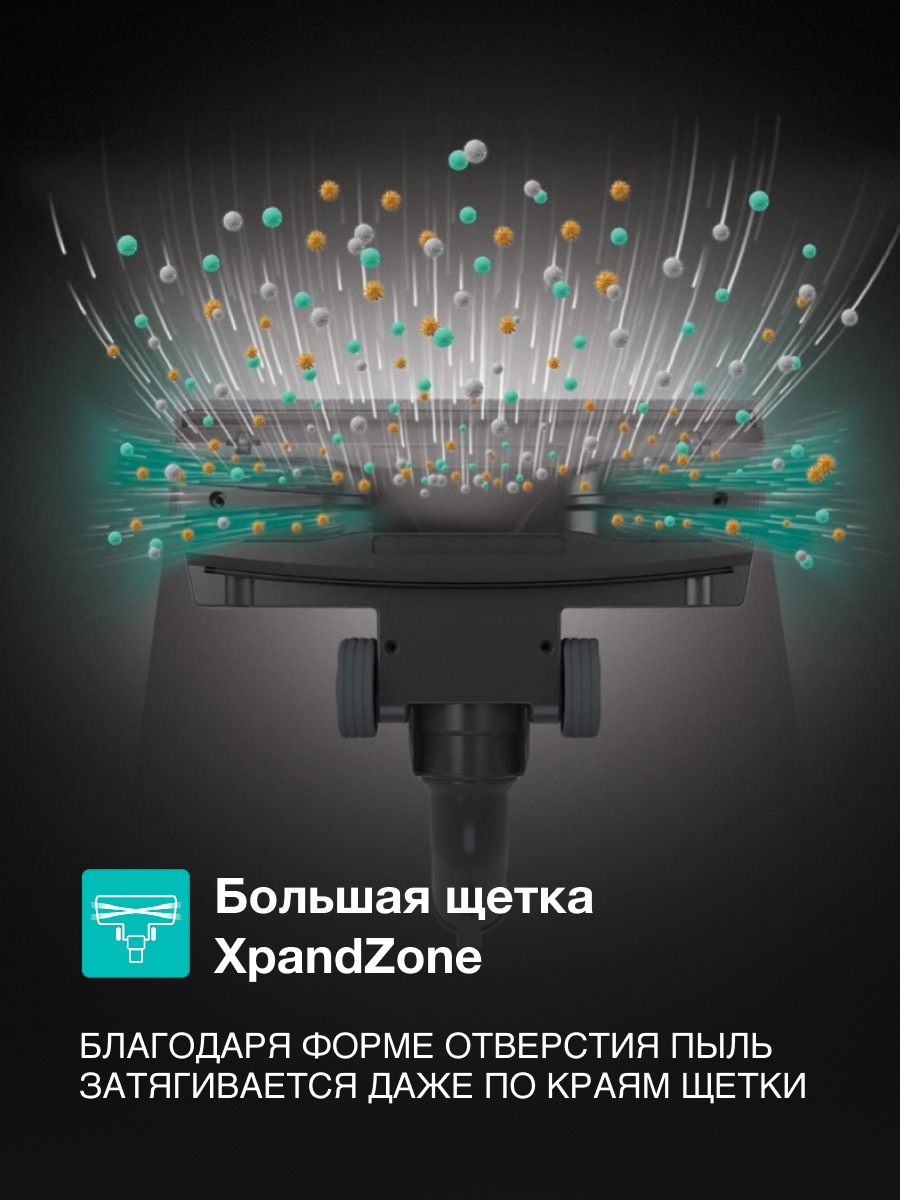 Модель оснащена двойной системой фильтрации, что помогает удалять до 99% частиц пыли – с пола и из воздушных потоков.
