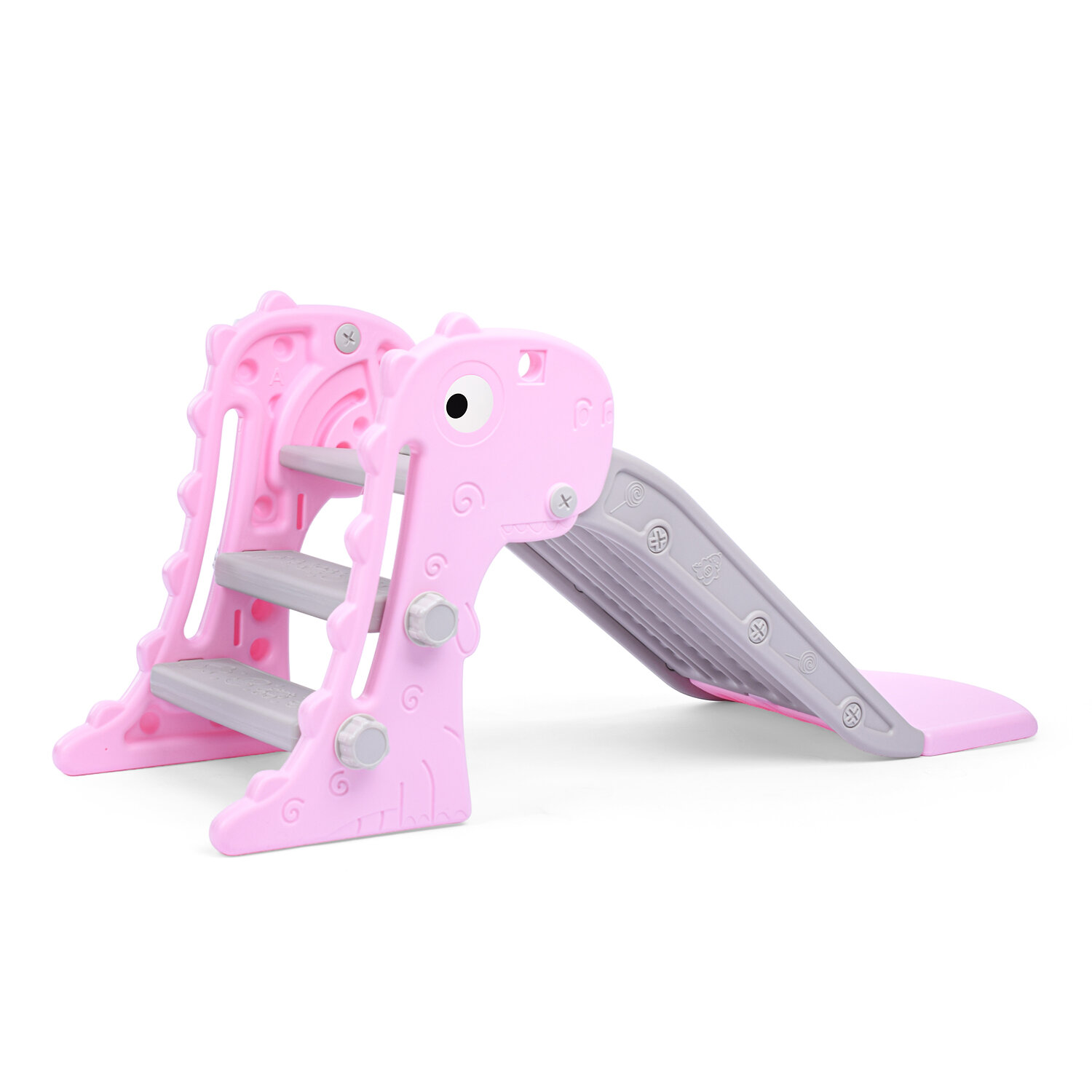 - Противоскользящие ступени не допускают падение крохи во время подъема на горку.