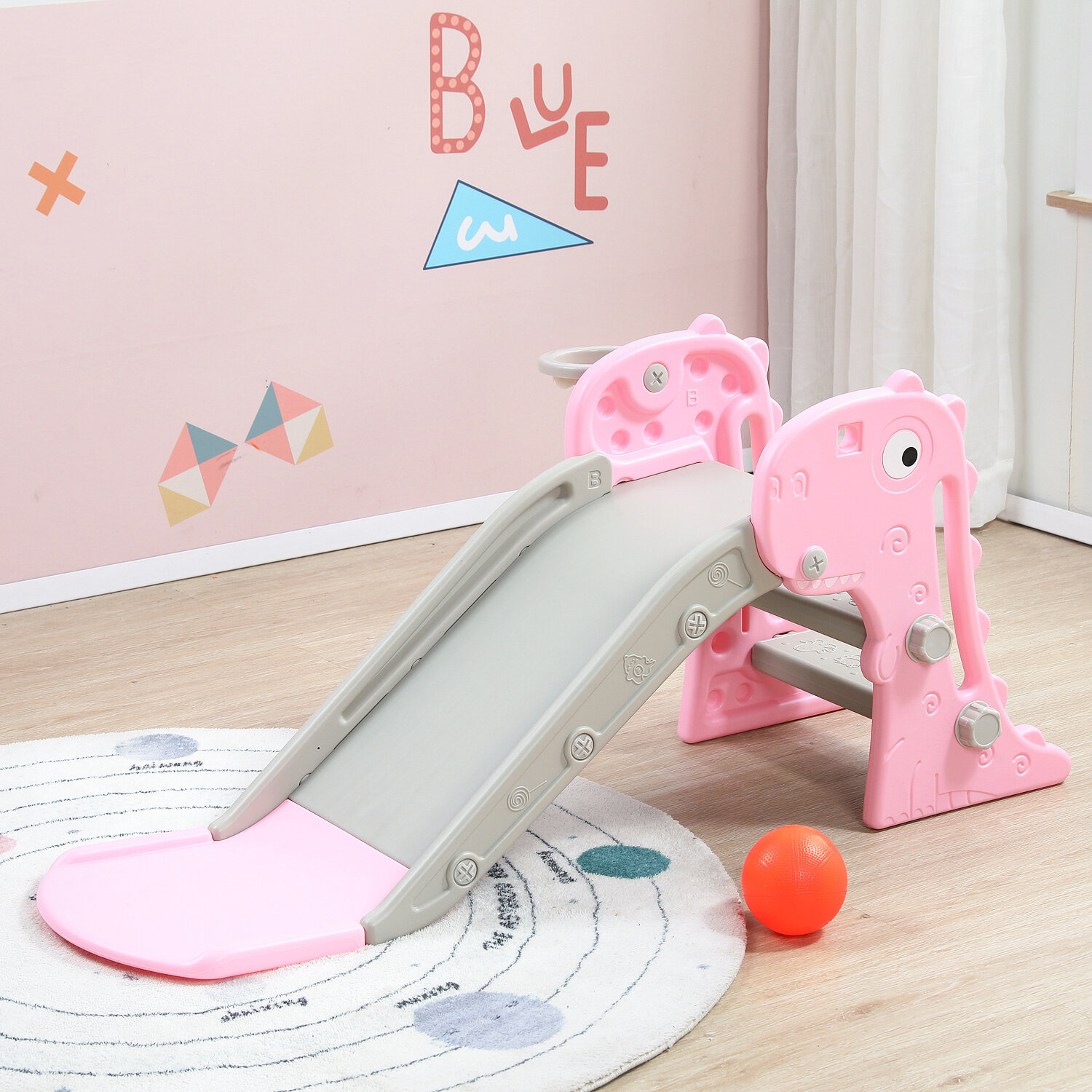 Дети обожают кататься с горки – это не только забавное развлечение, но и отличная физическая активность. Детская горка для катания с баскетбольным кольцом подарит массу положительных эмоций малышу. Она выполнена из прочного пластика и рассчитана на детей от 1 до 3 лет. Просыпаясь утром, ребенок с радостью будет бежать на свою горку, чтобы начать день со спортивной зарядки и веселых приключений.