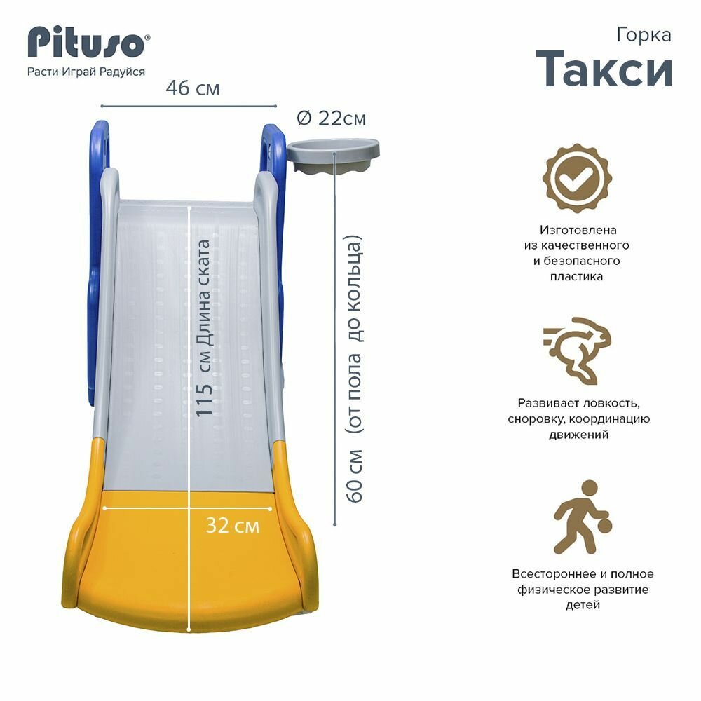 Купить Горка детская для дома и улицы Pituso «Такси», игровой комплекс 2 в 1 с баскетбольным кольцом, цвет сине-желтый с доставкой по всей России.