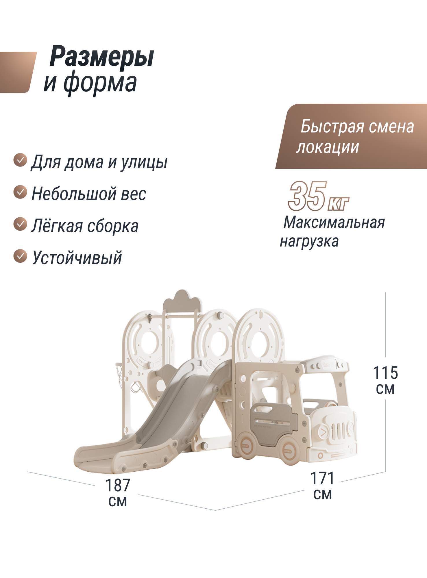 Горка детская с качелями, машинкой и баскетбольным кольцом UNIX Kids Bus Grey, игровой комплекс для дома, улицы, дачи: сравнение цен, характеристики, фото, актуальное наличие и цены.