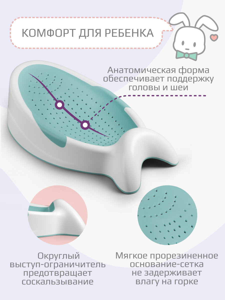 Горка Kidwick Рыбка предназначена для безопасного и комфортного купания новорожденных, которые пока не умеют сидеть и держать голову. С ней не придется постоянно поддерживать малыша на весу, у вас будут свободны руки для водных процедур. Уникальная форма в виде «рыбки» делает горку удобной и безопасной в использовании. Внутренняя мягкая сетка расположена под наклоном и обеспечивает анатомическое положение ребенка во время водных процедур. Благодаря прорезиненному основанию горка для купания новорожденных надежно фиксируется в ванне и не скользит по поверхности. Дополнительная точка опоры в виде «хвостика» предотвращает переворачивание во время использования. Горка имеет оптимальный размер, который позволяет использовать ее в ваннах и душевых кабинах всех видов. После купания горку легко высушить, просто повесив на крючок за специальную петлю. Благодаря легкому весу и компактности удобно брать с собой в поездки и путешествия. Изделие произведено в России из высококачественных гипоаллергенных материалов, абсолютно безопасных для чувствительной детской кожи. С горкой KidWick Рыбка купание станет любимым занятием мамы и малыша.