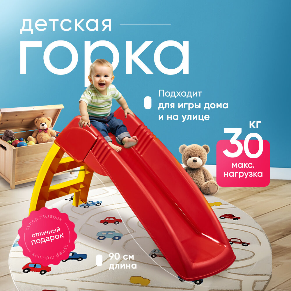 Купить Горка игровая Sheffilton KIDS 608, складная, для улицы и помещения, скат 90см, красная/желтая с доставкой по всей России.