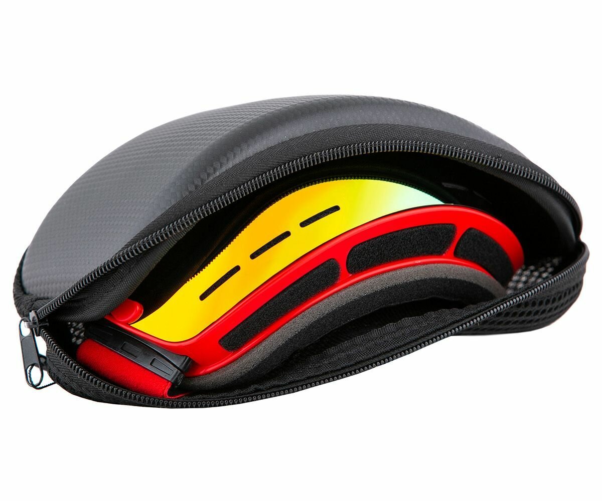 Маска имеет компактный размер и стильный дизайн. Ее характеристики включают прочный и износостойкий каркас, противотуманное покрытие, защиту от УФ-излучения, антизапотевающую функцию, резинку с волнообразным дизайном для предотвращения соскальзывания и регулируемый ремешок.