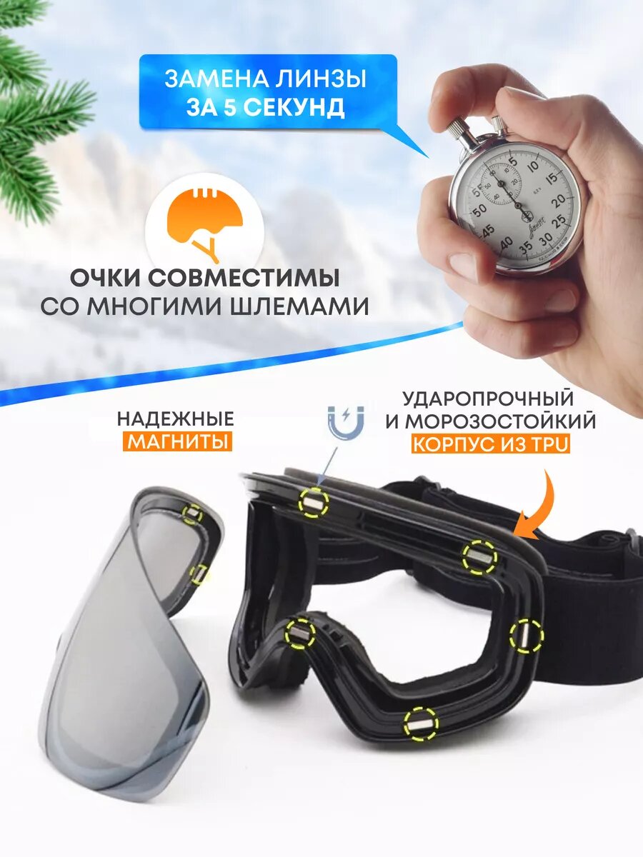 Купить Горнолыжные очки с магнит линзой, спортивная маска сноуборд. с доставкой по всей России. Горнолыжные очки с магнит линзой, спортивная маска сноуборд.: сравнение цен, характеристики, фото, актуальное наличие и цены.