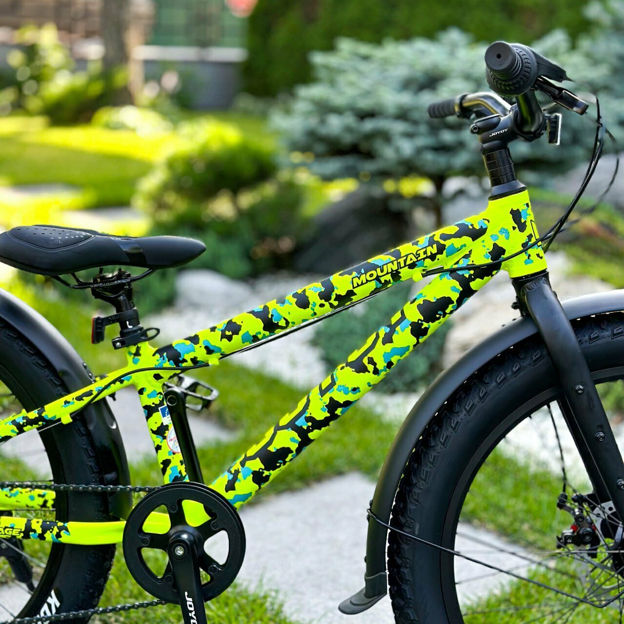 Купить Горный подростковый велосипед JOYOY, диаметр колес 24″, рама алюминий, камуфляж салатовый с доставкой по всей России.