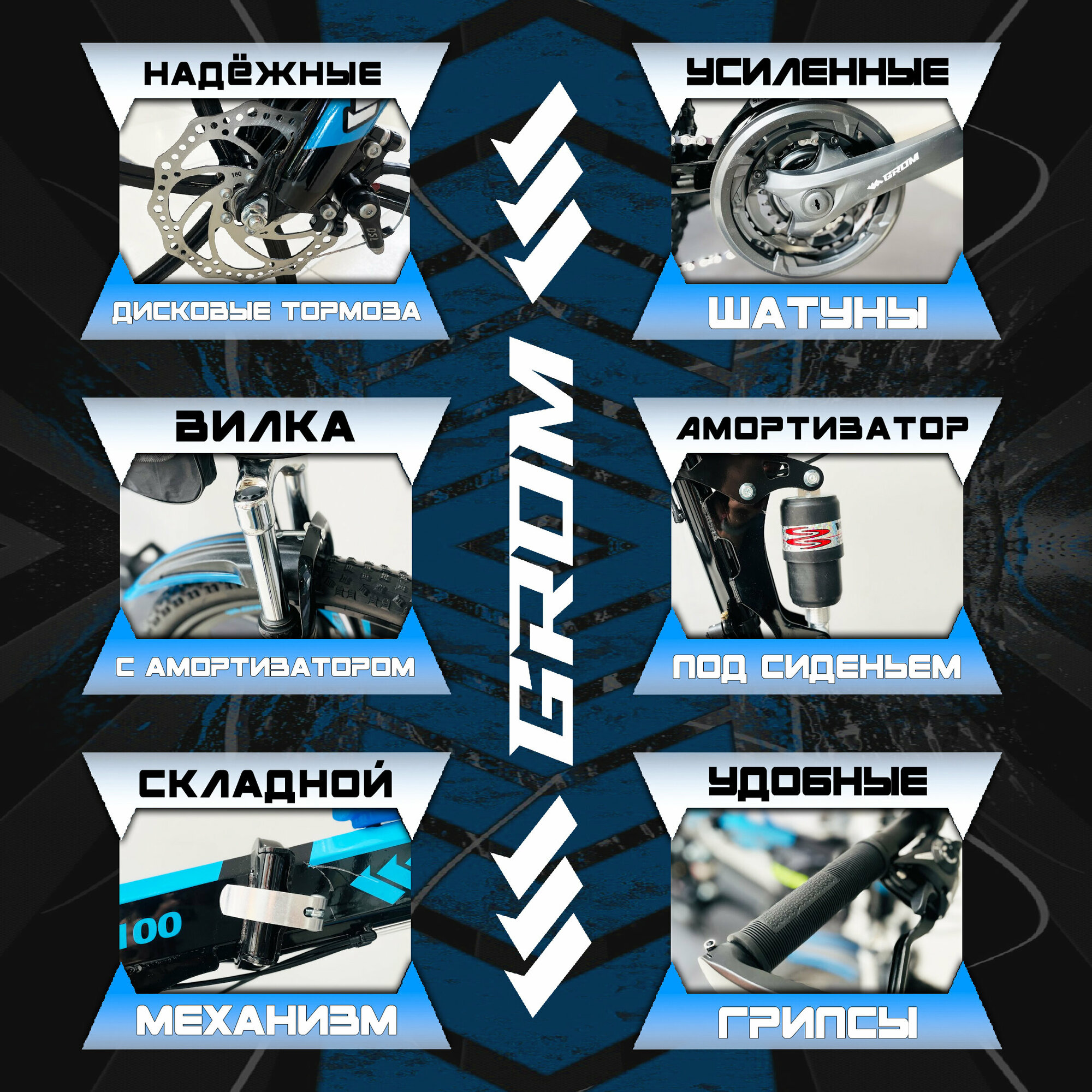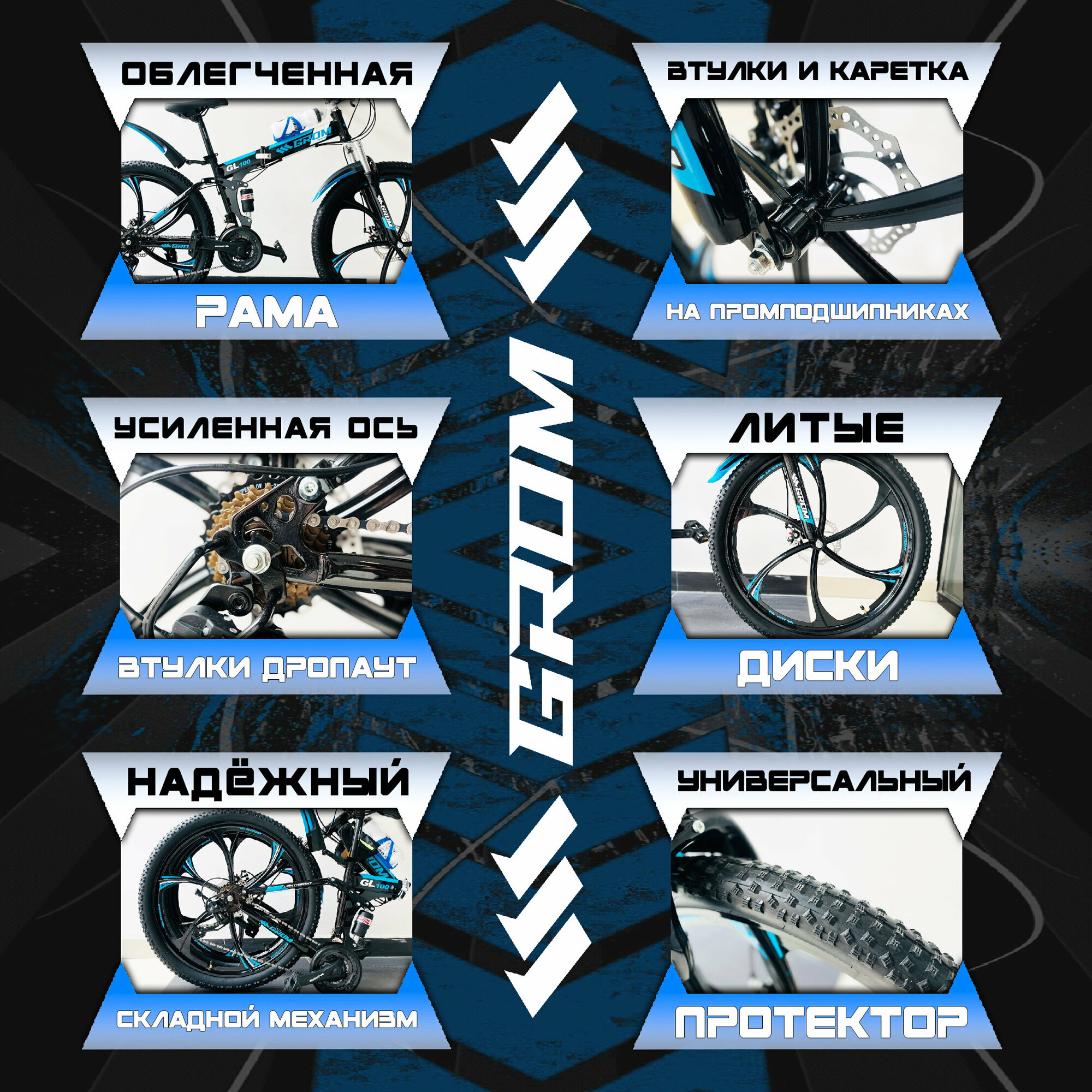 Складной велосипед GROM - это универсальная модель с литыми дисками для взрослых и подростков и идеальный подарок для активных и любящих велоспорт людей. С надежной 17-дюймовой рамой, большими 26 - дюймовыми колесами и скоростной системой с 21 передними скоростями, этот 2к - велосипед готов к любым прогулкам и спортивным приключениям. Оснащенный вилкой с функцией блокировки, удобным рулем и сидением с обивкой из искусственной кожи, а также дисковыми тормозами и полуинтегрированной рулевой колонкой. Красивый яркий цвет и литые диски придают ему стильный внешний вид, а противоугонная система и велозамок (конструкция из цепочки с замком) обеспечивают надежную защиту. Независимо от вашего роста и опыта, этот горный велосипед станет вашим надежным спутником на долгие годы. Этот велик подходит как для городской езды, так и для скоростного катания или туристических прогулок. Велосипед имеет унисекс - дизайн и может быть и женским, и мужским. Его размер рассчитан на людей с ростом от 145 - 175 см. Это 2х - колесный транспорт подходит для девушек и девочек, а также мальчиков - подростков. Дополнительно с ним идут 6 подарков - крылья, подножка, сумка, фонарик, противоугонный трос, бутылка с держателем. Его шины имеют диаметр 26 дюймов, а обода - двойные. Он оснащен классической двухколесной системой и имеет механический переключатель скорости и передачу при помощи цепи и педали классического формата. Этот велик - идеальный спутник для всех любителей велосипедной езды, будь то мужчины, женщины, девочки или мальчики.