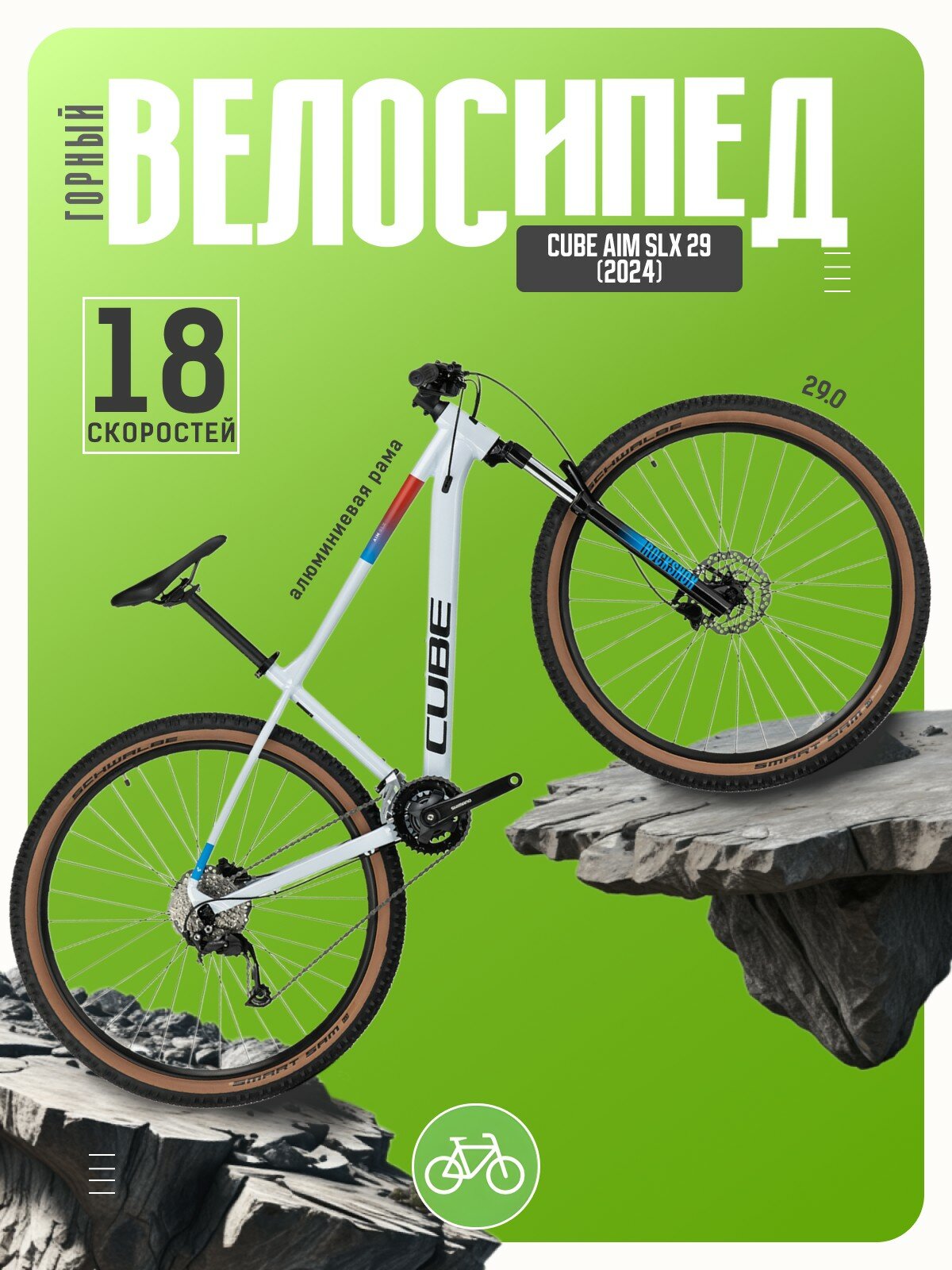 Горный велосипед Cube Aim SLX 29, год 2024, цвет Белый-Синий, ростовка 22: сравнение цен, характеристики, фото, актуальное наличие и цены.