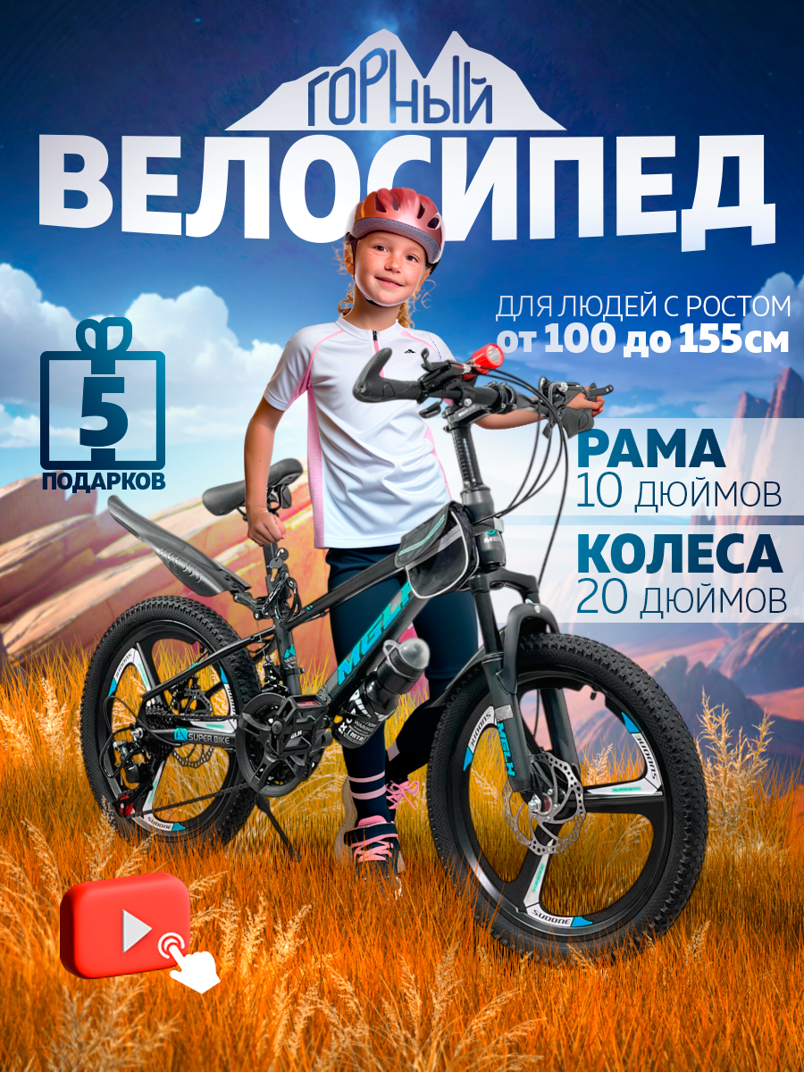 Горный велосипед детский скоростной, колёса 20″, рама — 10″, серо-синий: сравнение цен, характеристики, фото, актуальное наличие и цены.