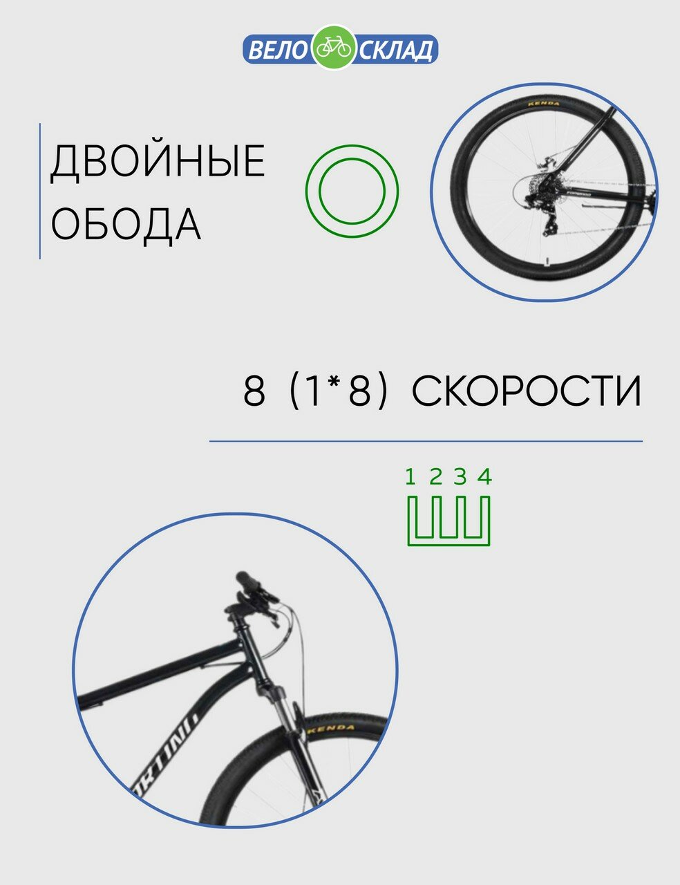 | Особенности велосипеда | двойной обод, возможность крепления боковых колес |