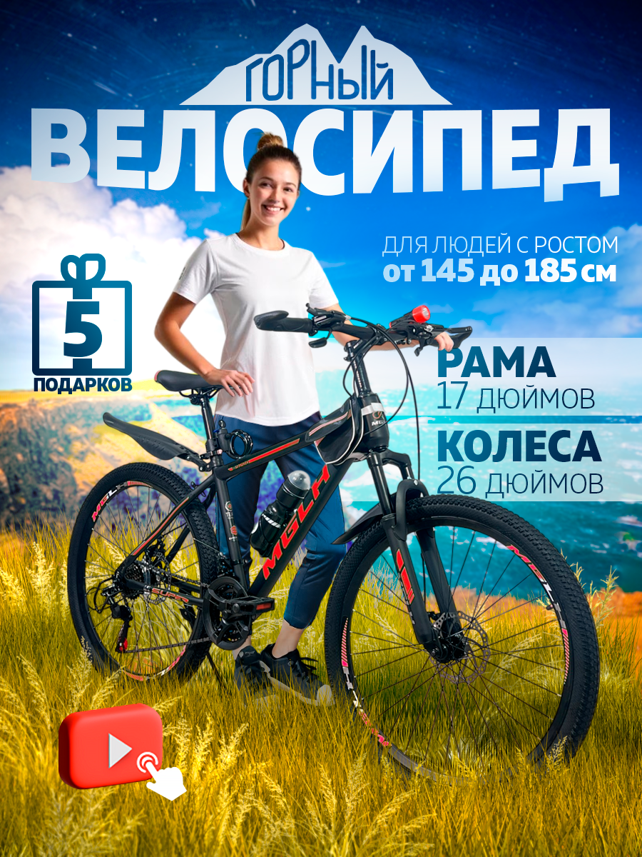 Горный велосипед скоростной, черно-красный, колёса — 26″, рама — 17″, 21 скорость: сравнение цен, характеристики, фото, актуальное наличие и цены.