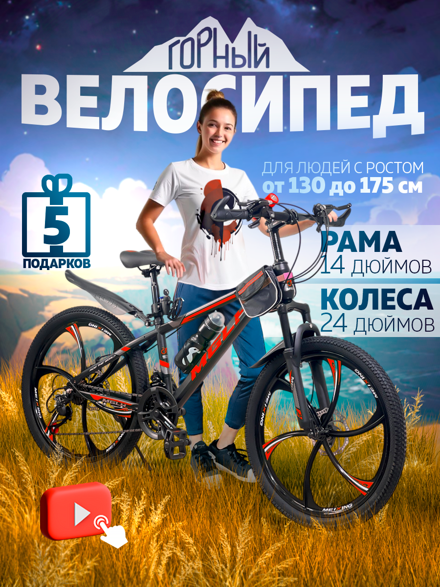 Горный велосипед скоростной, колёса 24″, рама — 14″, черно-красный: сравнение цен, характеристики, фото, актуальное наличие и цены.
