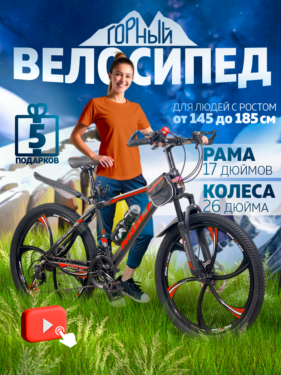 Горный велосипед скоростной, колёса — 26″, рама — 17″, черно-красный: сравнение цен, характеристики, фото, актуальное наличие и цены.