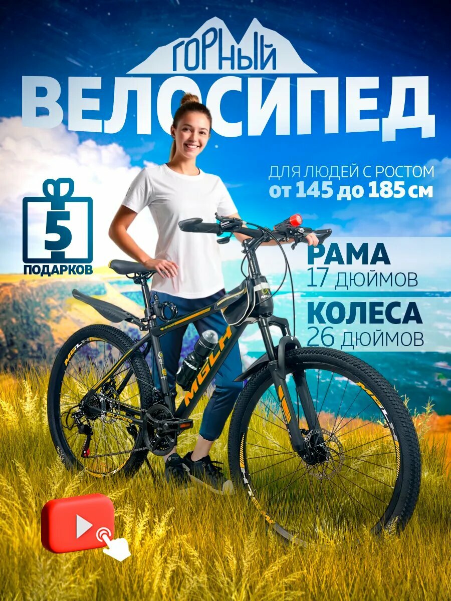 Горный велосипед скоростной, серо-оранжевый, колёса — 26″, рама — 17″, 21 скорость: сравнение цен, характеристики, фото, актуальное наличие и цены.