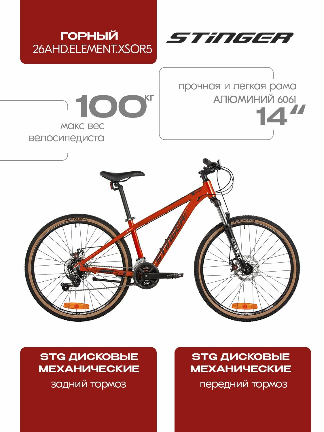 Горный велосипед Stinger Element 26 (2025), алюминиевая рама, размер XS, оранжевый: сравнение цен, характеристики, фото, актуальное наличие и цены.