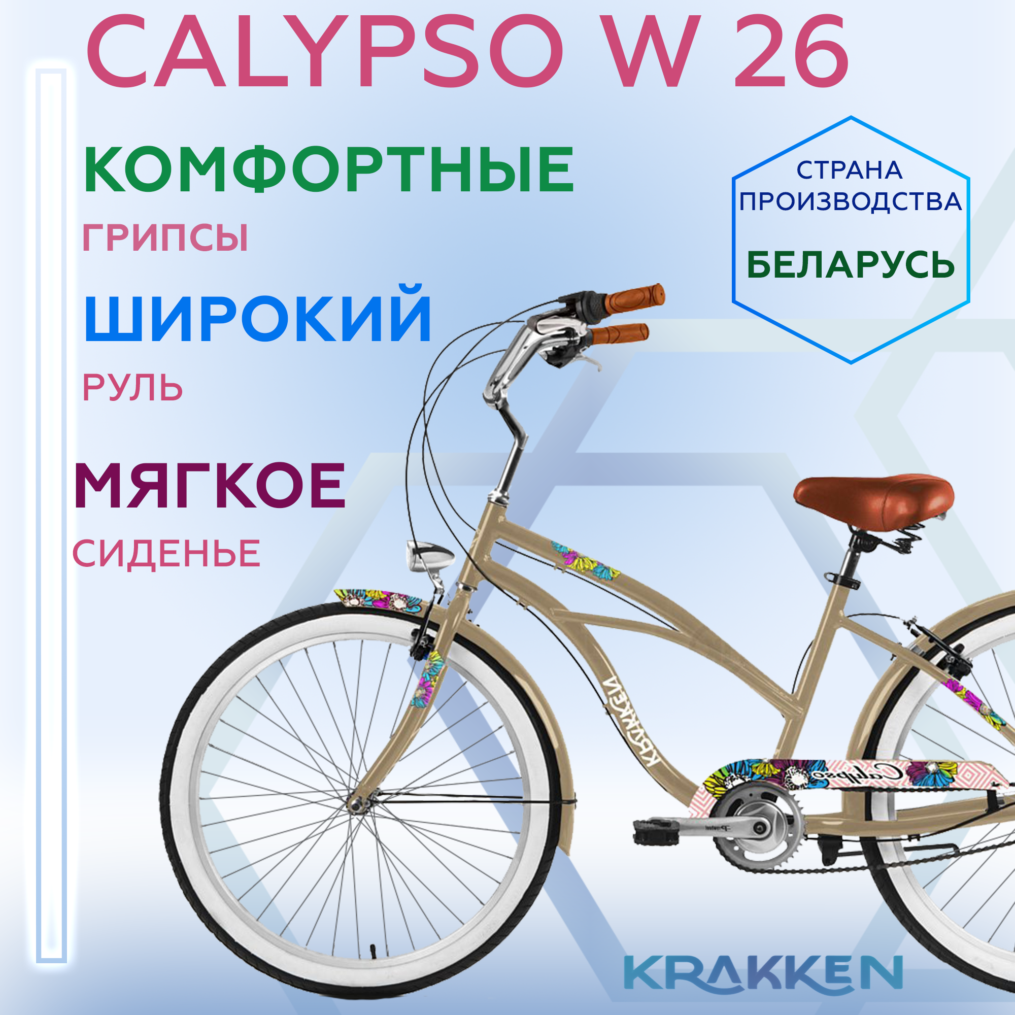 Городской круизер велосипед KRAKKEN Calypso W 26″ коричневый 2024: сравнение цен, характеристики, фото, актуальное наличие и цены.