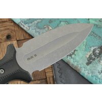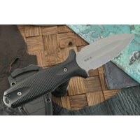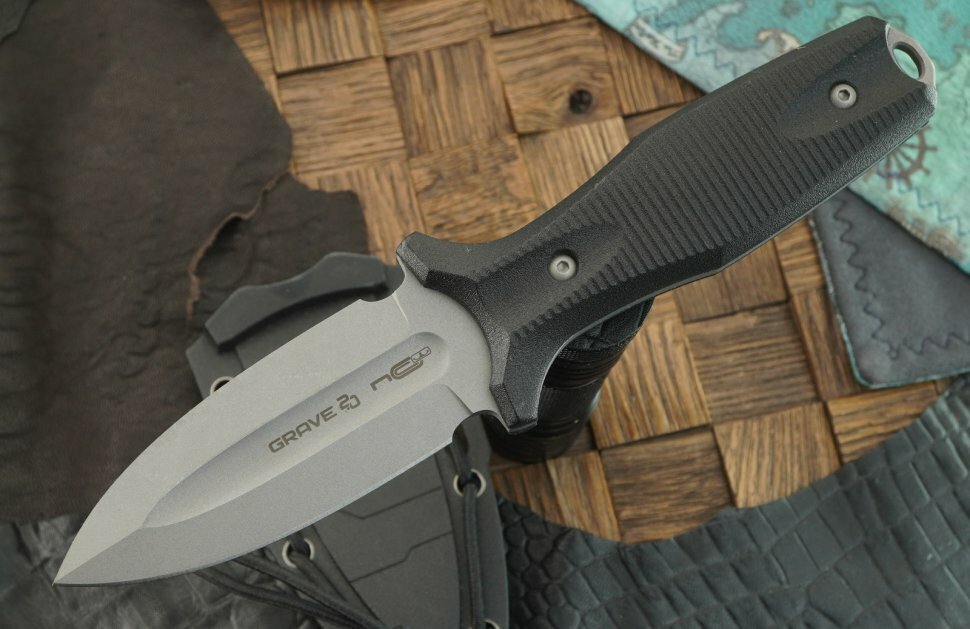 Модель GRAVE имеет практически симметричный клинок с усиленным ребром жесткости на обухе. Плавный скос фальшлезвия образует острый и мощный кончик с высокой проникающей способностью. Клинок выполнен из хром-молибденового стального сплава немецкого производства. В состав сплава входит хром, углерод и легирующие элементы, которые отвечают за жесткость кристаллической структуры. Одним из важных качеств этого типа стали является высокая ударная вязкость и износоустойчивость - такой нож прослужит вам много лет. Для повышения коррозионной стойкости и расширения рабочего функционала на клинок нанесено покрытие стоунвош. Удобная рукоять с развитыми упорами обеспечивает высокий уровень безопасности в процессе выполнения силовой работы.