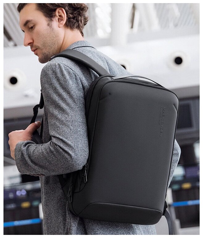 Стильный, практичный и надежный рюкзак Mark Ryden предназначен для ежедневных городских поездок или в качестве ручкой клади в путешествиях и командировках. Его вместимость 15 литров, при весе 960 грамм. Такого объема достаточно чтобы взять с собой необходимый запас личных вещей для поездки или все что может пригодится для работы вне дома/офиса. Аксессуар отлично держит форму и смотрится аккуратно и гармонично даже с деловым костюмом. Его размеры составляют 42см*30см*12см. В данной модели использована фурнитура известной марки YKK. Особенности рюкзака Mark Ryden - Черный Конструкция Рюкзак удобно носить как за спиной, так и в руках. Для этого в конструкции предусмотрена прочная ручка расположенная на верхней части. Спинка и лямки оснащены мягкими вставками из дышащей мембраны, которые снижают нагрузку на плечи и мышцы спины, а также позволяют воздуху лучше циркулировать. Удобство Все карманы, отделения и отсеки продуманы таким образом, чтобы вы без труда смогли разместить все ваши вещи и в любой момент быстро их достать, не перемешивая все содержимое рюкзака. На лямке рюкзака имеется небольшой кармашек, который подойдет для хранения пластиковой карты или проездного документа. Внешний USB порт Наружный USB порт позволяет подключить телефон к зарядному устройству, не снимая рюкзака. Для этого вам надо заранее положить во внутренний карман ваш Power Bank (не входит в комплект) и подключить его изнутри к USB-разъему. Кроме того, в модели продуман разъем micro USB, предназначенный для зарядки самого аккумулятора. Подключайте внешний аккумулятор только к одному разъему внутри рюкзака: либо Type-C/micro USB, либо USB A. Вместимость Два основных отделения оснащены различными внутренними кармашками, в которые можно сложить канцелярские мелочи, смартфон, аккумулятор, а также книги, документы, средства личной гигиены и много другое. Конструкцией предусмотрен отсек для ноутбука оснащенный мягкими стенками и крепежной лентой на липучке. Внутри внешней крышки имеется водонепроницаемый карман на молнии. Надежные материалы Современный материал винил вынослив и прочен, отлично противостоит износу и прекрасно держит форму. Кроме того, он отталкивает лишнюю влагу, которая может нанести вред содержимому рюкзака. Так например, даже пролив чашку кофе вы можете не опасаться что ваши вещи промокнут. Однако рекомендуем сразу устранить лишнюю воду, не допустив впитывания в материал. Защита содержимого Для удобства транспортировки на спинке рюкзака продумана крепежная лента, которая надевается на ручку чемодана и обеспечивает удобство. Для хранения важных документов или смартфона можно использовать потайной карман спрятанный на задней стенке. Доступ к нему невозможен когда рюкзак надет на вас.