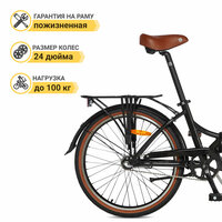 | Особенности | педали: складные пластиковые, в комплекте: катафоты, светоотражатели; уровень манеток: начальный; уровень каретки: прогулочный; тип привода: цепной; уровень заднего тормоза: начальный; уровень переднего тормоза: прогулочный; рулевая колонка: безрезьбовая; материал бортировочного шнура: металл; ширина профиля шины (камеры): 1.95"; уровень заднего переключателя: начальный; уровень кассеты: начальный; комплектация: багажник, подножка, защита цепи, звонок, крылья |