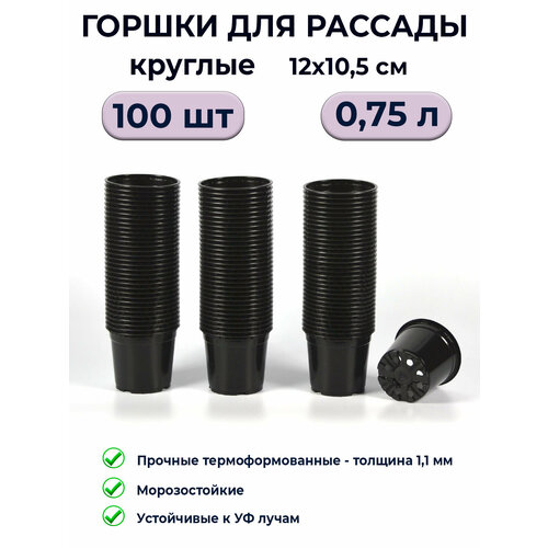 Надежные круглые горшки для крепкой рассады и цветов! Набор из 100 прочных термоформованных горшков объемом 0,75 л (диаметр 12 см, высота 10,5 см). Идеальное решение для растений с развитой корневой системой.