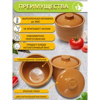 Горшочки изготовлены из красной глины, что обеспечивает равномерное распределение тепла и медленное приготовление блюд. Это позволяет сохранить все полезные свойства и аромат ингредиентов.