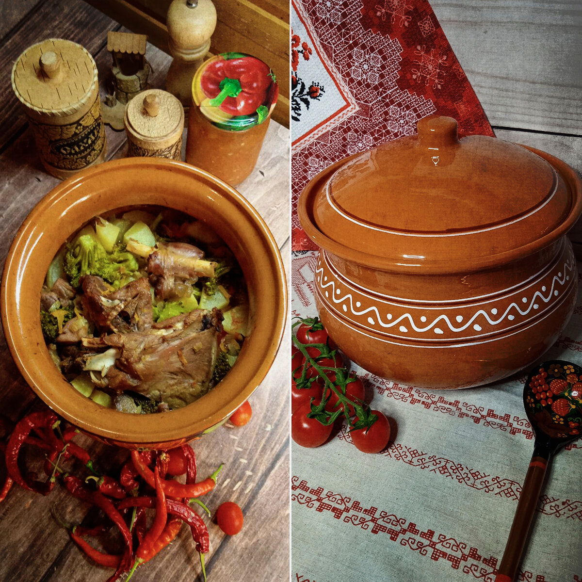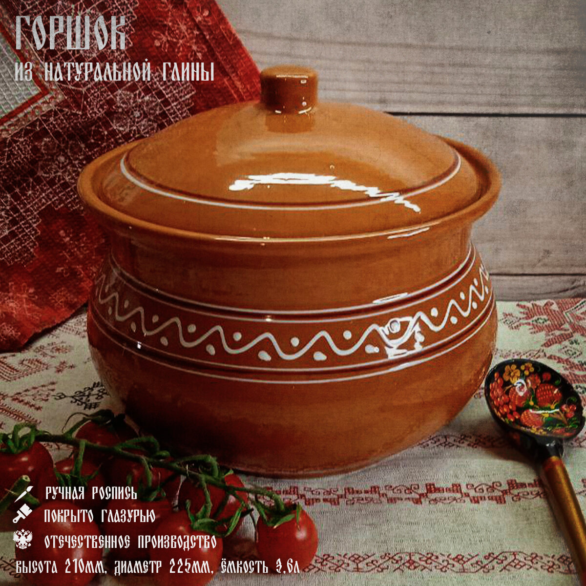 Купить Горшок для тушения, горшок Псковский Гончар, горшок для запекания из натуральной глины, горшочек, горшочек расписной, горшок для духовки большой с доставкой по всей России.