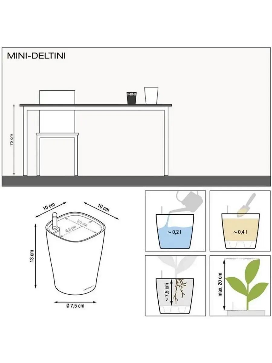 Кашпо с автополивом Lechuza MINI DELTINI Premium, L10 W10 H13 см, белое глянцевое / горшок для цветов: сравнение цен, характеристики, фото, актуальное наличие и цены.