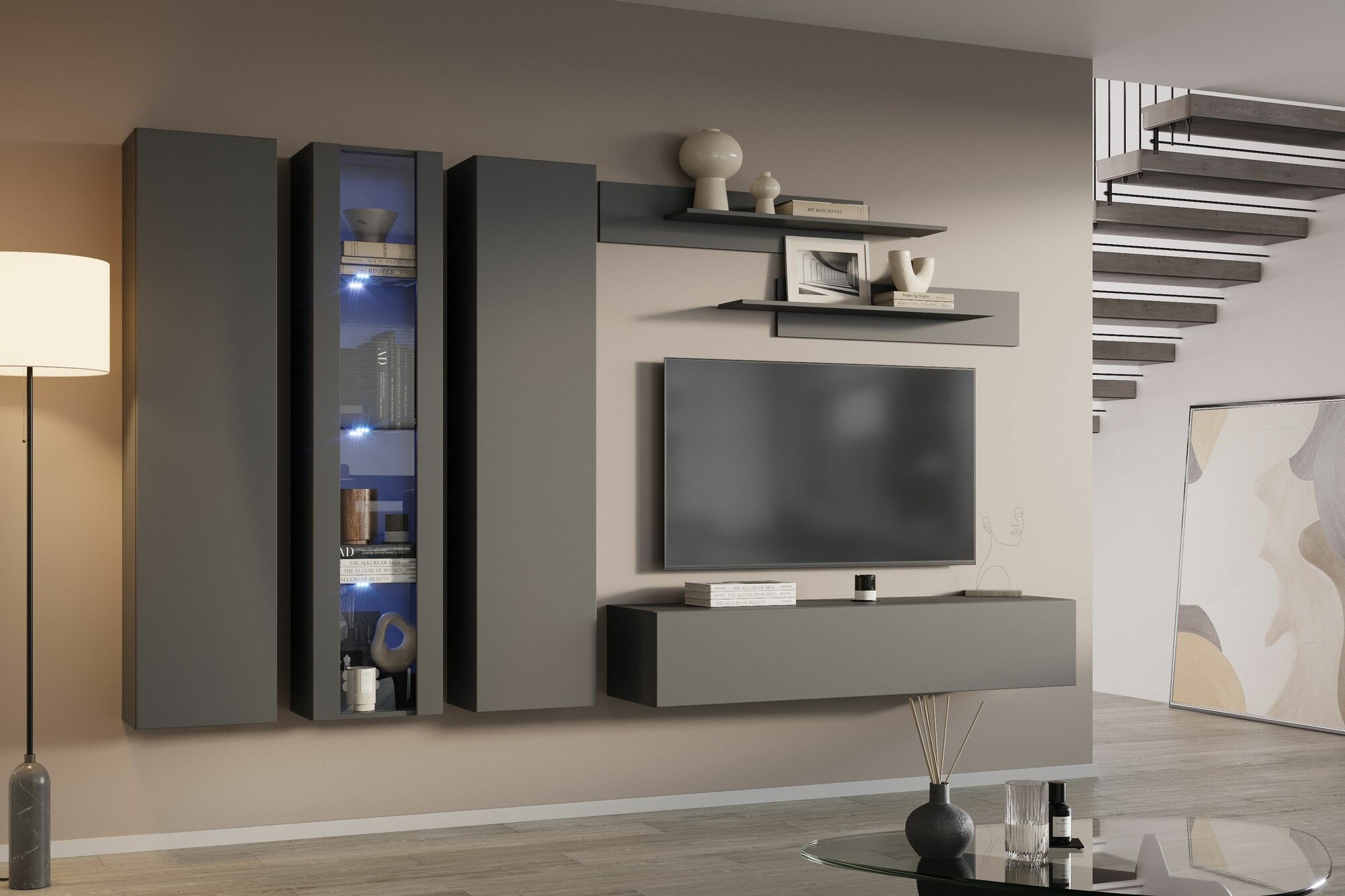 Создайте уют и гармонию в вашем доме с помощью великолепной гостиной, которая станет центром вашего интерьера. Эта стенка в гостиную выполнена в элегантном сером цвете, который прекрасно впишется в различные стили оформления.