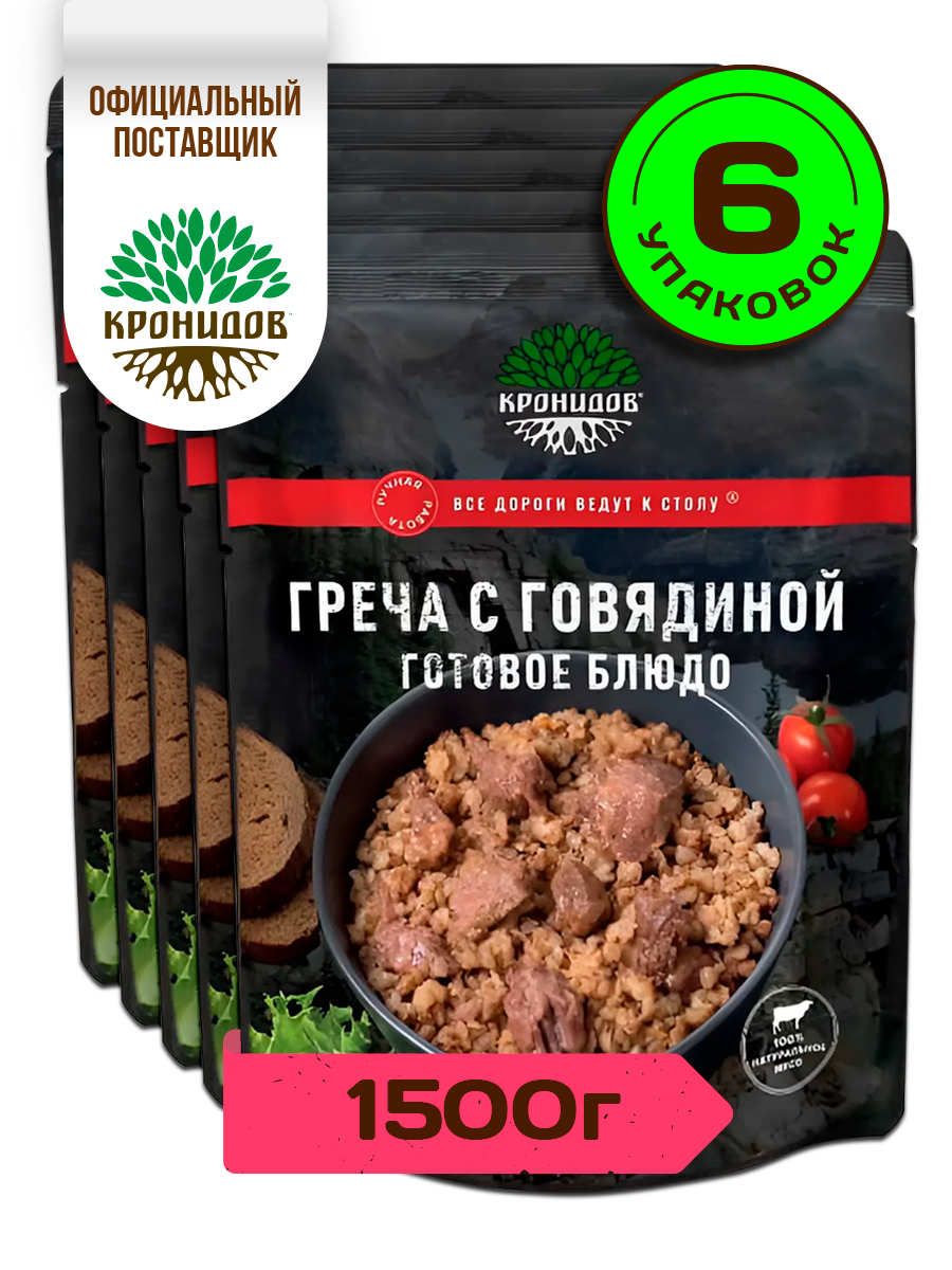 Готовое блюдо Кронидов Греча с говядиной Готовая еда/ Консервы натуральные Набор 6 шт. по 250 г: сравнение цен, характеристики, фото, актуальное наличие и цены.