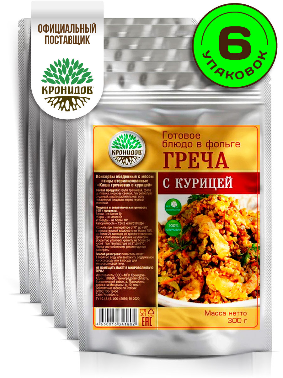 Купить Готовое блюдо Кронидов Греча с курицей Готовая еда/ Консервы натуральные Набор 6 шт. по 300 г с доставкой по всей России.