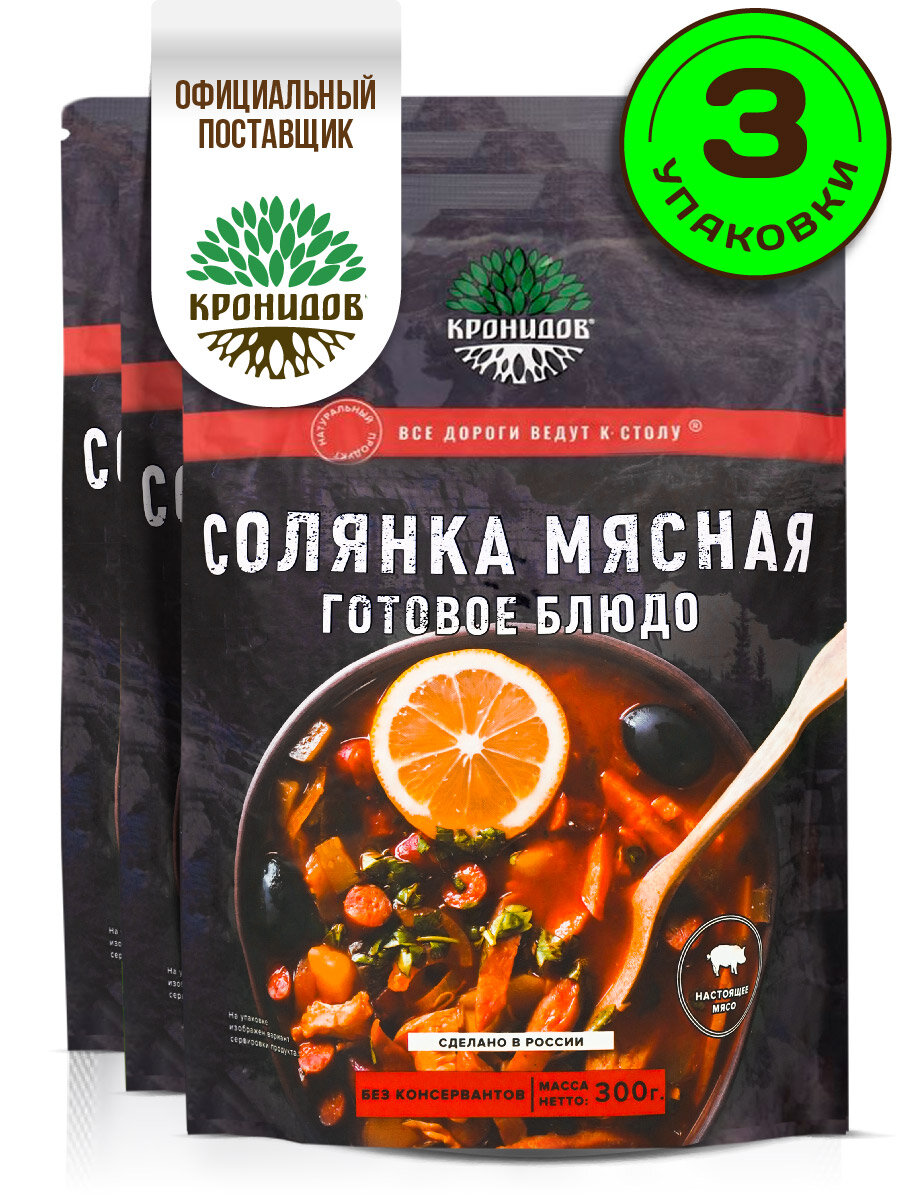 Готовое блюдо Кронидов Солянка Готовая еда/ Консервы натуральные Набор 3 шт. по 300 г: сравнение цен, характеристики, фото, актуальное наличие и цены.