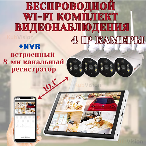 Готовый беспроводной WI-FI Smart комплект видеонаблюдения на 4 ай пи уличных камеры с монитором экраном для дома и улицы, дачи, склада или магазина. Ультратонкий цветной LSD монитор с диагональю 10.1 дюймов. Монитор оснащен встроенным 8-канальным регистратором. Видеосигнал с камер передается на видеорегистратор по беспроводной связи на частоте 2.4 ГГц на расстоянии до 100 м (в прямой видимости). Для записи архива поддерживается установка жесткого диска объемом до 6 Тб (в комплект не входит). Архивация до 2 месяцев. Видеозапись осуществляется в трех направлениях: непрерывно, по заданному расписанию, по детекции движения. В условиях плохого освещения автоматически включается режим инфракрасной подсветки камер и/или белая светодиодная подсветка, при помощи которой осуществляется цветная ночная съемка. Управление монитором с помощью беспроводной USB-мыши. Удаленный просмотр онлайн со смартфона из любой точки мира через приложение XMEye или ХMEYE PRO ( Android или IOS). Поддерживается отправка push-уведомлений по движению на смартфон и сообщений на E-mail. Меню регистратора и приложение для смартфона на русском языке. Простота настройки системы видеонаблюдения: достаточно подать питание на ip камеры и регистратор и система будет готова к работе. В комплекте есть все что нужно для подключения. Возможность подключить еще 4 дополнительных камеры. Все компоненты оптимизированы и не нуждаются в дополнительной настройке. Уличные ip камеры с матрицей 2 Mp оснащены мощной ИК и LED-подстветкой. Возможность записи в платное облоко. Обзор беспроводных всепогодных камер 110 гр. Комплект беспроводного видеонаблюдения имеет двухстороннюю аудиосвязь, встроенный динамик и микрофон. Функции интеллектуального обнаружения человека в кадре, распознование лиц. Камеры могут быть установлены как на улице, так и в помещении. Монитор можно повесить на стену или поставить на стол. Беспроводной набор видеонаблюдения - это современный вариант наблюдения за вашим домом или офисом без кабеля и проводов.