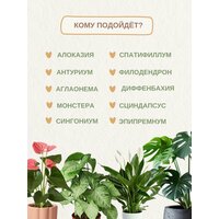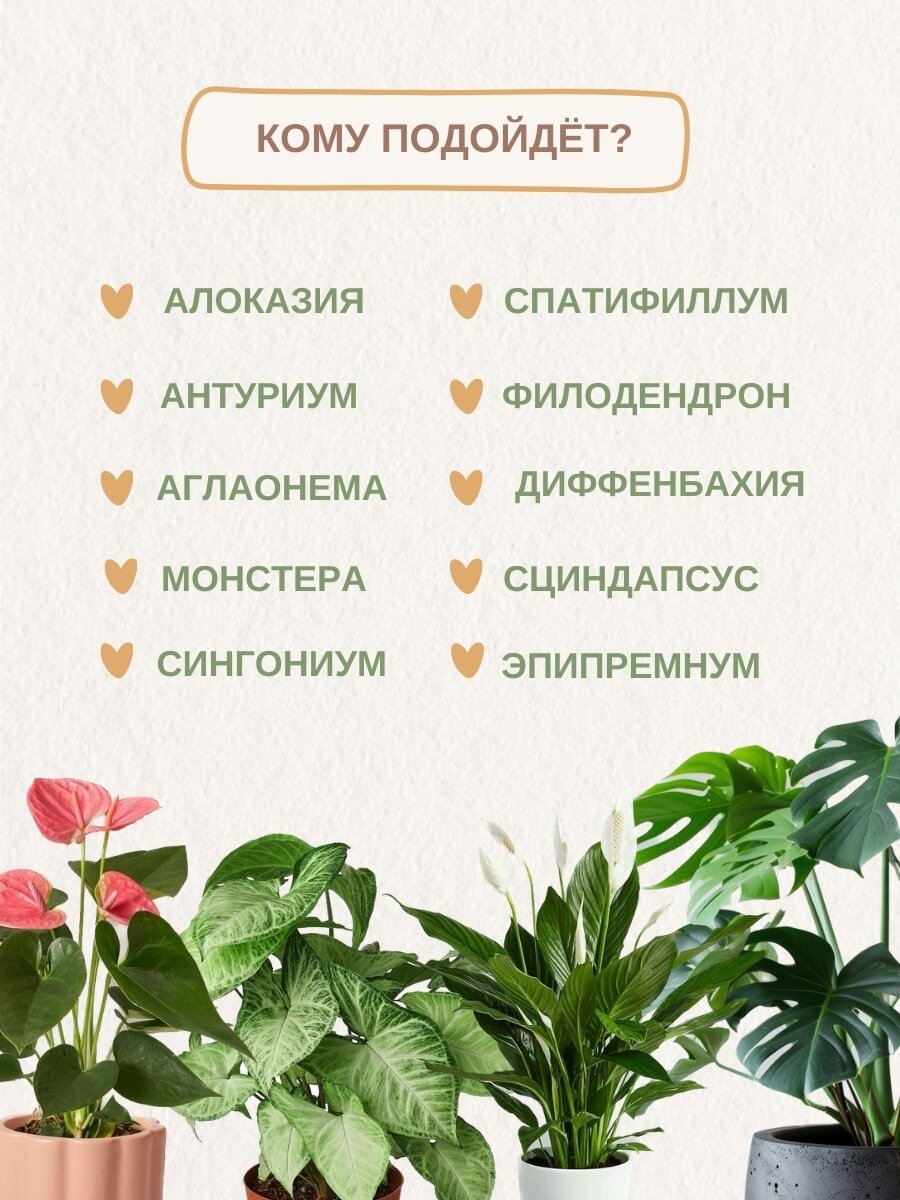 Подходит для: Монстера, филодендрон, диффенбахия, антуриум, сциндапсус, эпипремнум, аглаонема, спатифиллум, антуриум, алоказия и другие ароидные комнатные растения.