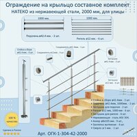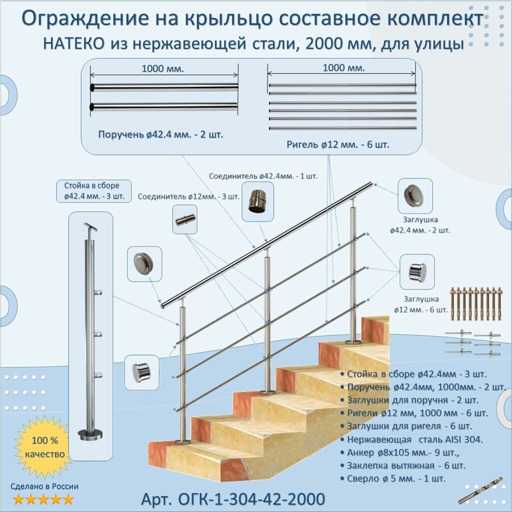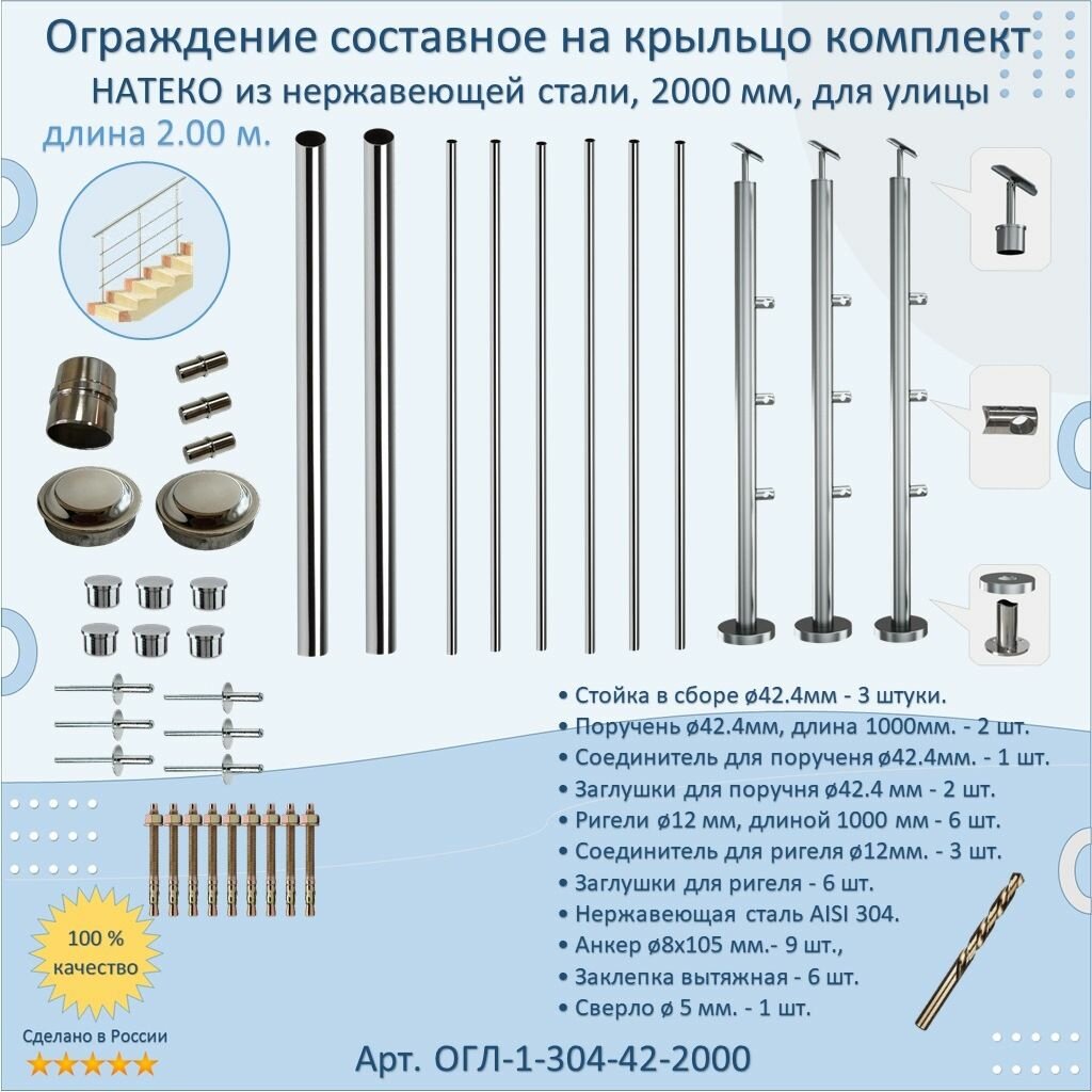 Перила для лестницы натеко, составное ограждение 2 м. из Нержавеющей Стали AISI 304, поручень 42.4 мм, из нержавейки для Улицы: сравнение цен, характеристики, фото, актуальное наличие и цены.