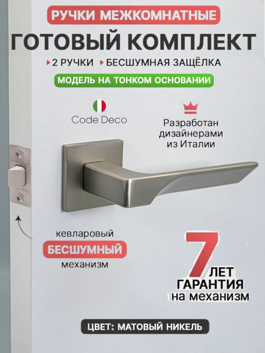Купить Готовый комплект 2в1 ручка дверная межкомнатная CODE DECO РР Slim H-30122-A-NISM на тонком основании / цвет Никель матовый + защелка без фиксации с доставкой по всей России. Готовый комплект 2в1 ручка дверная межкомнатная CODE DECO РР Slim H-30122-A-NISM на тонком основании / цвет Никель матовый + защелка без фиксации: сравнение цен, характеристики, фото, актуальное наличие и цены.