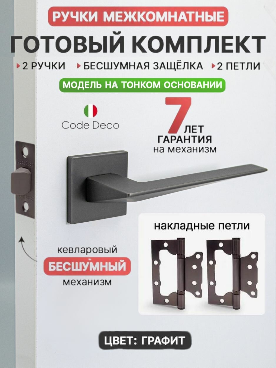 Купить Готовый комплект 4в1 ручка дверная межкомнатная CODE DECO РР Slim H-30133-A-GRF на тонком основании / цвет Графит + защелка без фиксации + петли накладные (2 шт) с доставкой по всей России. Готовый комплект 4в1 ручка дверная межкомнатная CODE DECO РР Slim H-30133-A-GRF на тонком основании / цвет Графит + защелка без фиксации + петли накладные (2 шт): сравнение цен, характеристики, фото, актуальное наличие и цены.