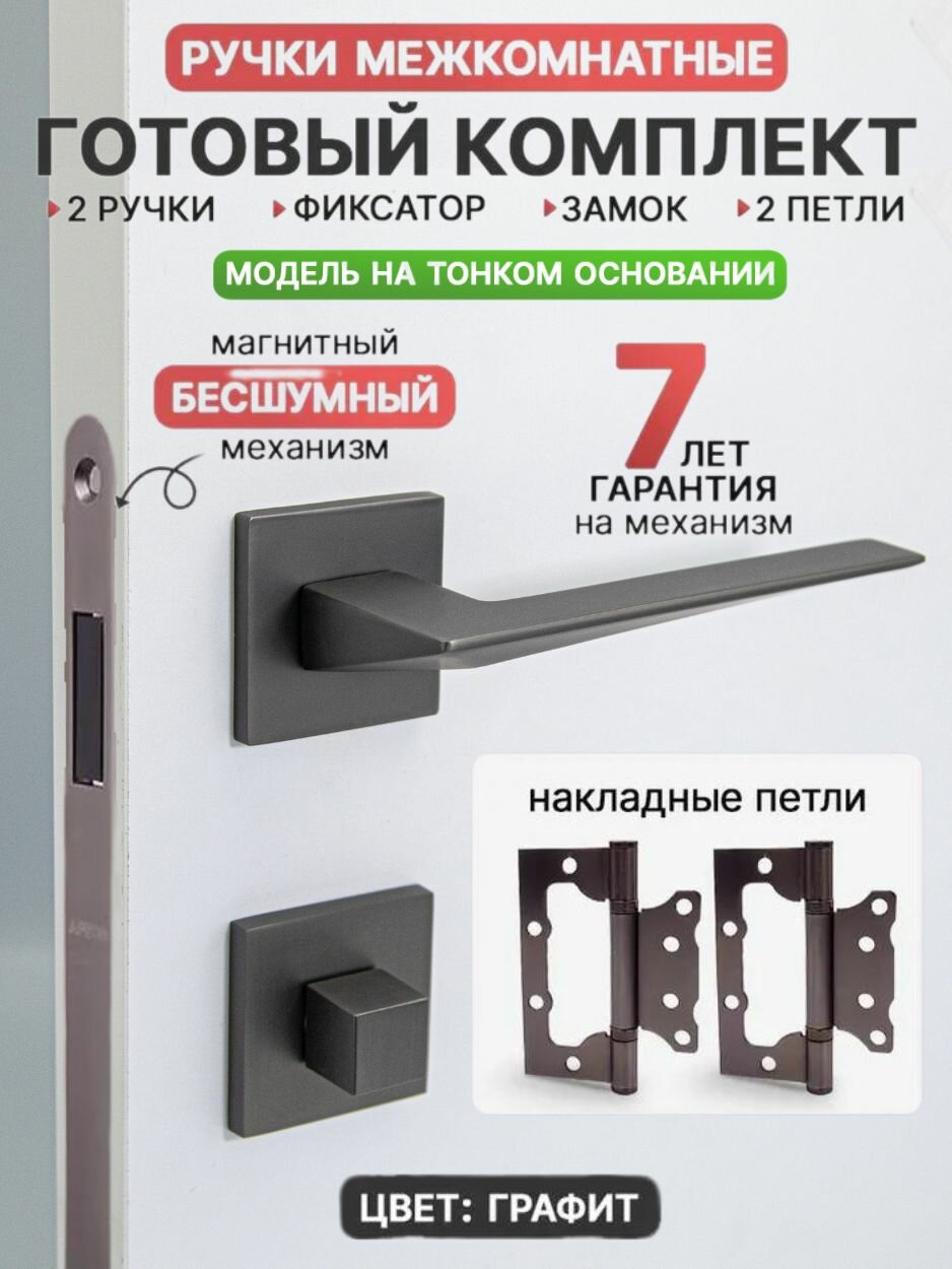 Купить Готовый комплект 5в1 ручка дверная межкомнатная CODE DECO РР Slim H-30133-A-GRF на тонком основании / цвет Графит + защелка с фиксацией + WC-фиксатор + петли накладные (2 шт) с доставкой по всей России. Готовый комплект 5в1 ручка дверная межкомнатная CODE DECO РР Slim H-30133-A-GRF на тонком основании / цвет Графит + защелка с фиксацией + WC-фиксатор + петли накладные (2 шт): сравнение цен, характеристики, фото, актуальное наличие и цены.