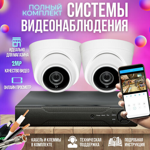Полноценный комплект видеонаблюдения состоящий из AHD видеорегистратора, 2-х камер видеонаблюдения, блока питания и кабеля.